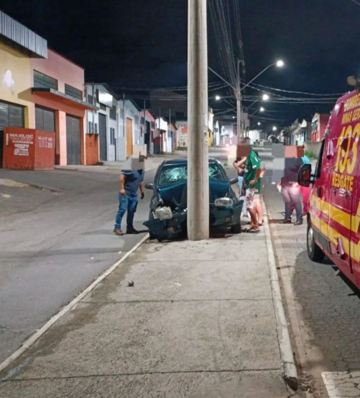Um veículo modelo Corsa colidiu contra um poste na noite desta quarta-feira (2). O acidente aconteceu na Av. José Santana, no bairro Joaquim Sales.