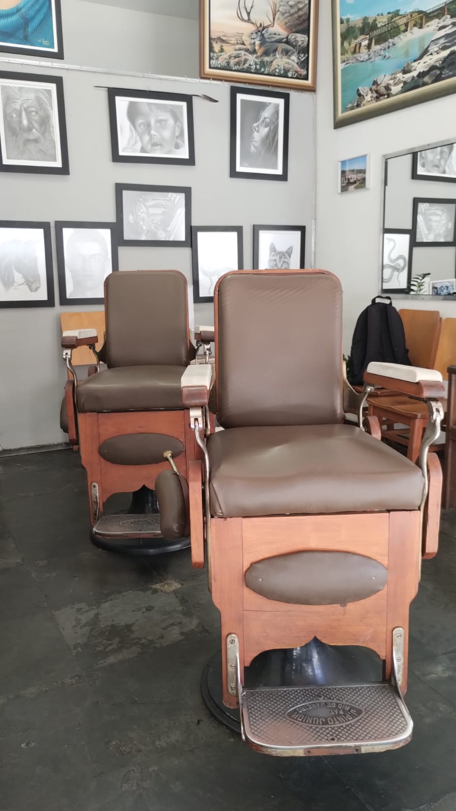 A barbearia mantém parte do mobiliário original, composto de um espelho e duas cadeiras. As paredes do imóvel são tomadas por quadros. O salão abre seu espaço para artistas locais mostrarem seus trabalhos na forma de fotografia, quadros e desenhos. O passado e o presente convivem de forma harmoniosa.