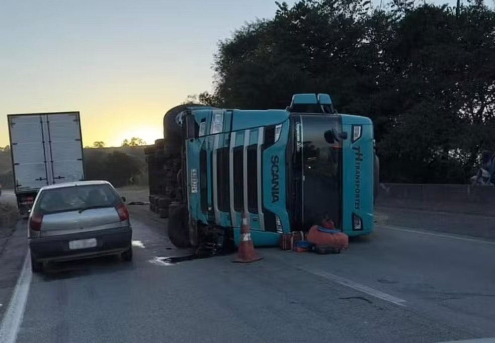 Uma carreta carregada com café tombou na Fernão Dias, em Perdões (MG), na manhã desta quinta-feira (8). Segundo a Arteris, o caso aconteceu no km 674,5, sentido Belo Horizonte, por volta de 6h. O motorista saiu ileso.
