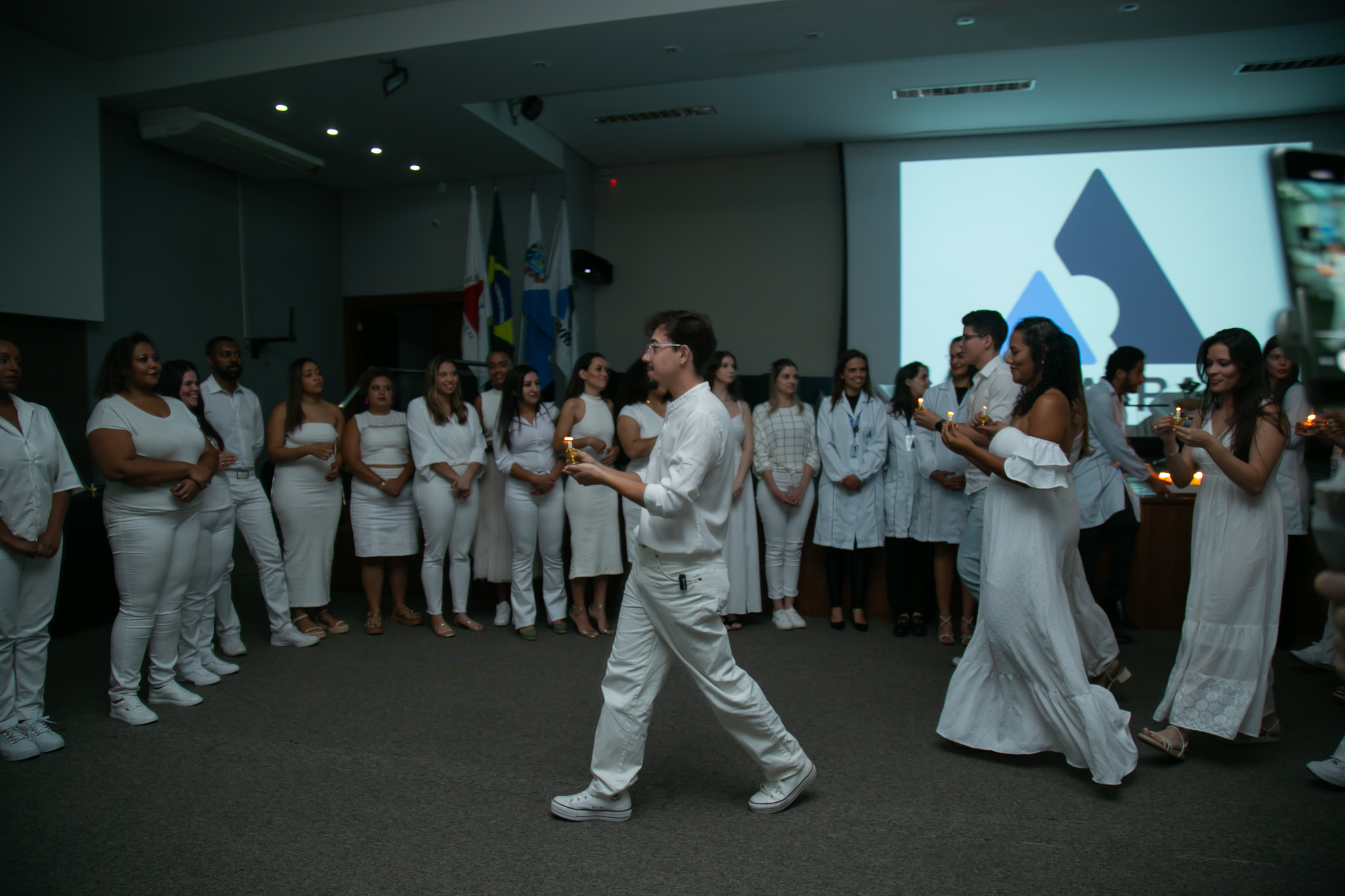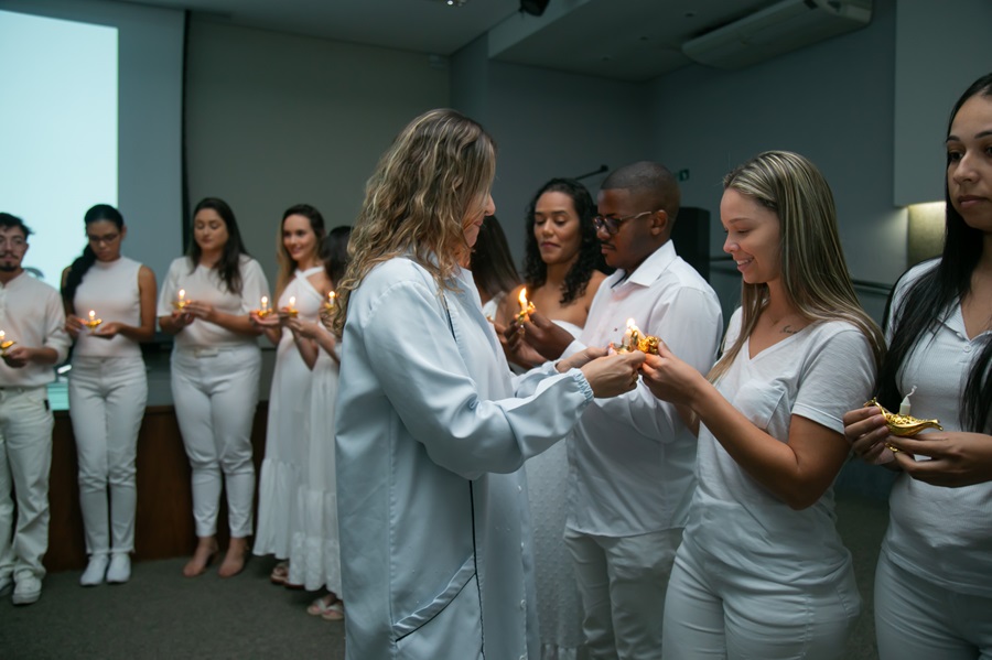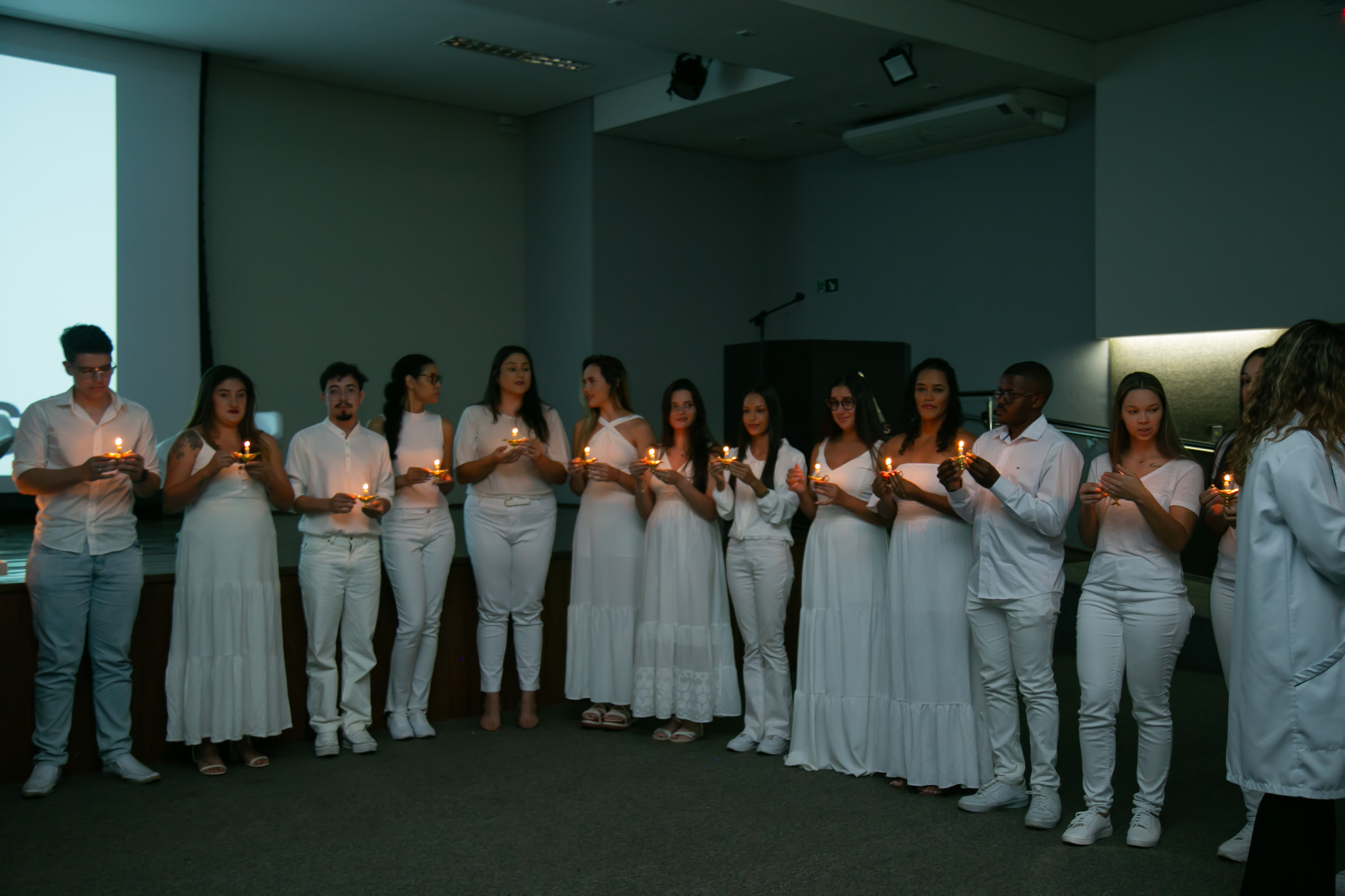 Eles participaram da tradicional Cerimônia de Passagem da Lâmpada, um evento simbólico em que a chama da Enfermagem é passada dos formandos para os estudantes que ainda estão em processo de graduação.
