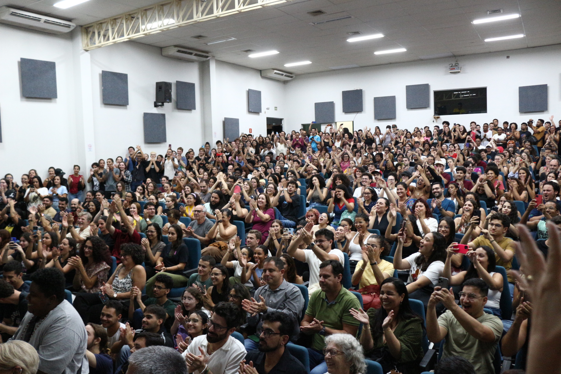 Auditório lotado para ouvir Duda Salabert na Universidade Federal de Lavras.