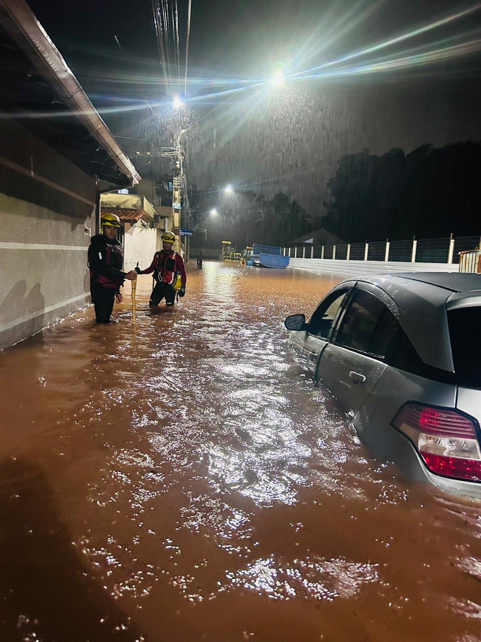 Entre as vítimas está um motociclista que foi arrastado pela enxurrada e levado até um terreno com árvores e abaixo do nível da rua. O homem ficou segurando em galhos até a chegada dos bombeiros e saiu do local sem ferimentos.