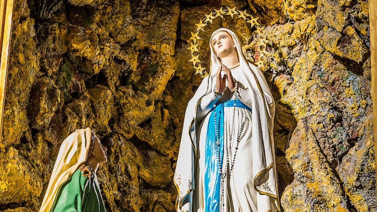 A devoção de Lourdes iniciou na França no ano de 1858. Ao aparecer a uma menina analfabeta que estava no ofício diário de recolher lenha para aquecer e espantar o frio em sua casa, a ‘’senhora iluminada’’ aparece numa gruta e conversa com a menina de nome Bernadete. Entres outros diálogos nas 18 aparições, pede que a menina de 14 anos cave no chão daquela gruta, assim fazendo, Bernadete viu surgir uma fonte de águas límpidas que atrairia milhares de pessoas, e que até hoje continua a levá-las a Lourdes buscando a cura do corpo e da alma.