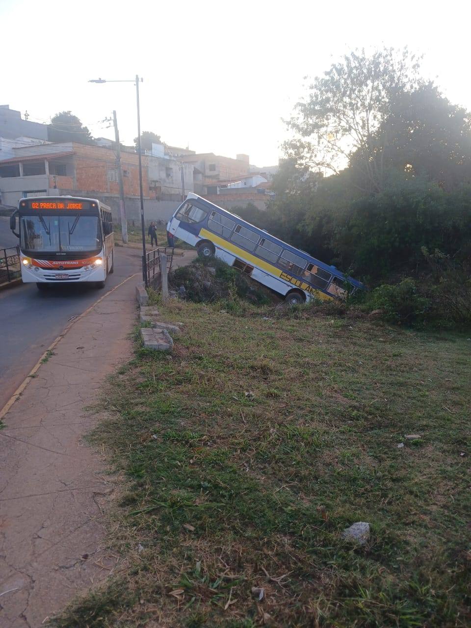 Lar Notícias Ônibus cai em barranco na zona sul de Lavras