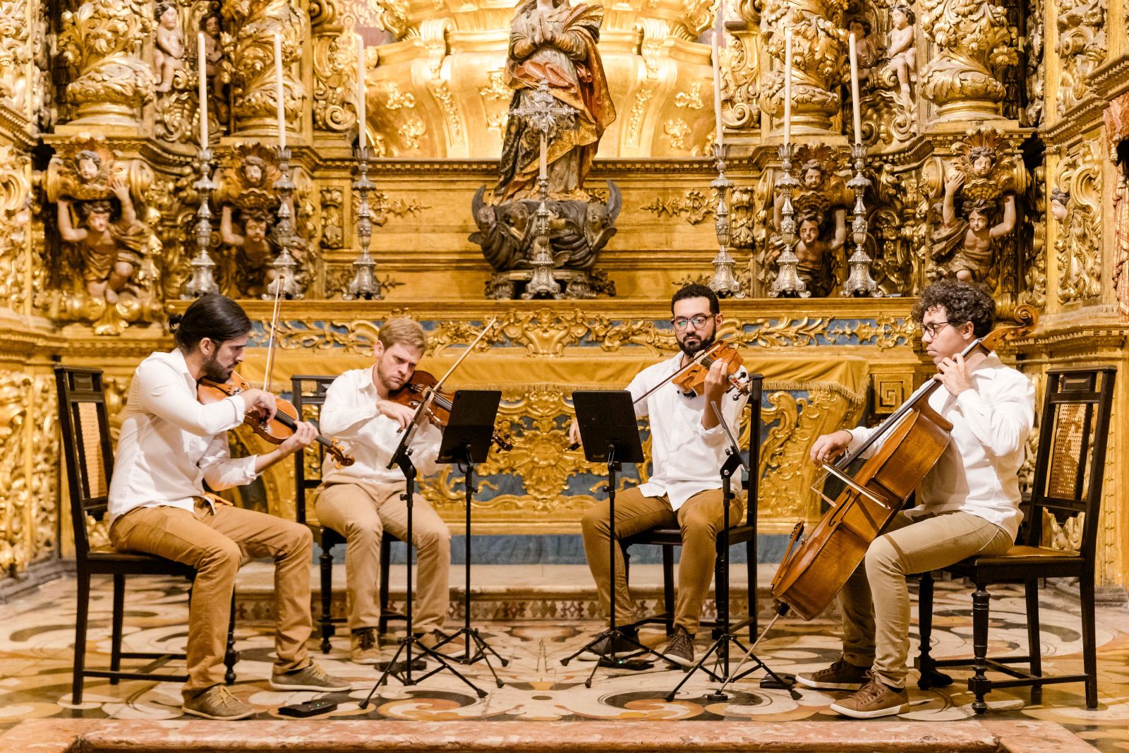 Os músicos Bruno Valente (violoncelo), Ivan Scheinvar (violino), Luís Felipe Ferreira (viola) e Thiago Teixeira (violino) interpretaram peças de Mozart (Quarteto de Cordas, número 4 em Dó Maior, k157), Bach (Ária na Corda Sol – Segundo Movimento da Suíte número 3) e Schubert (“A Morte da Donzela” número 14 em Ré Menor).