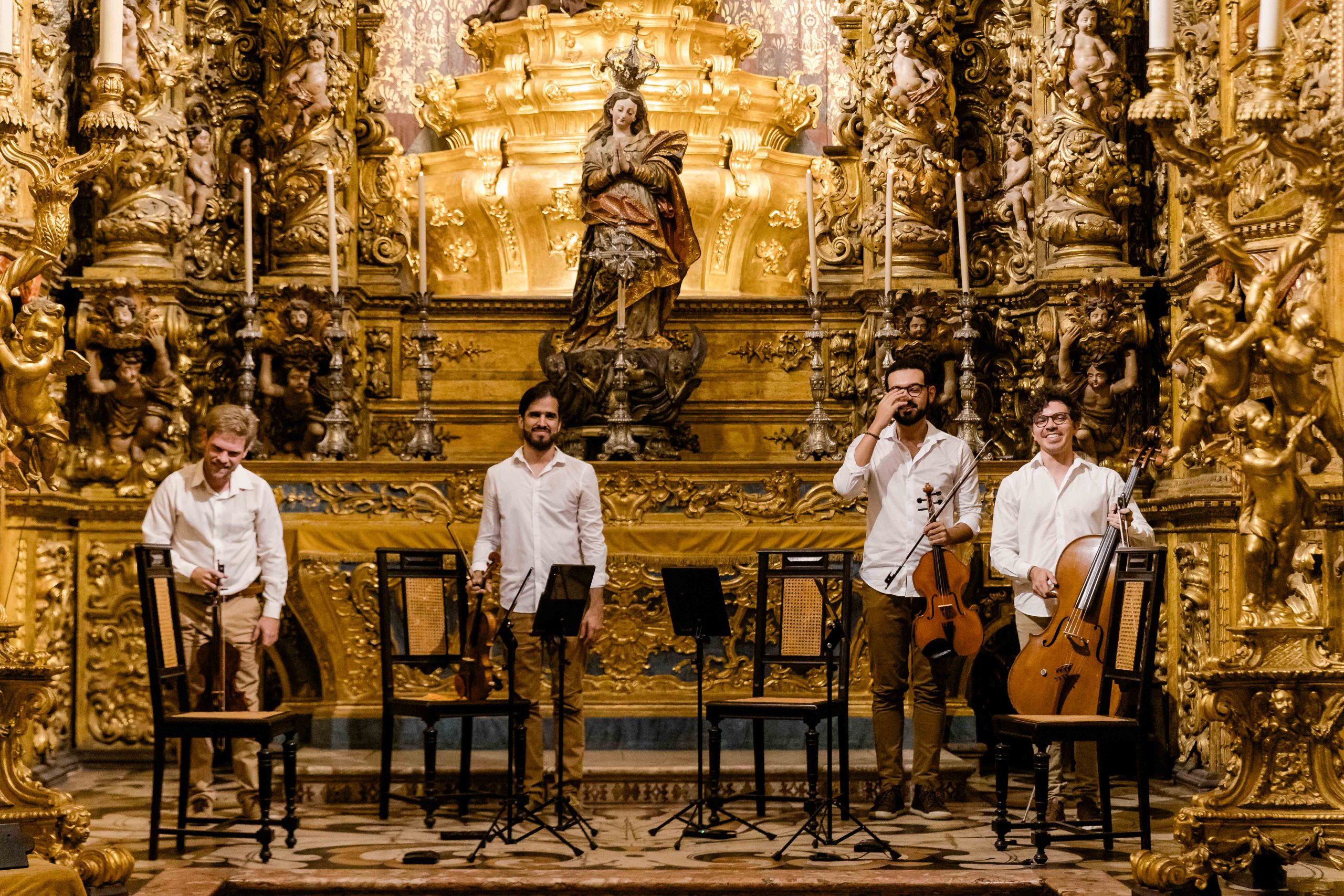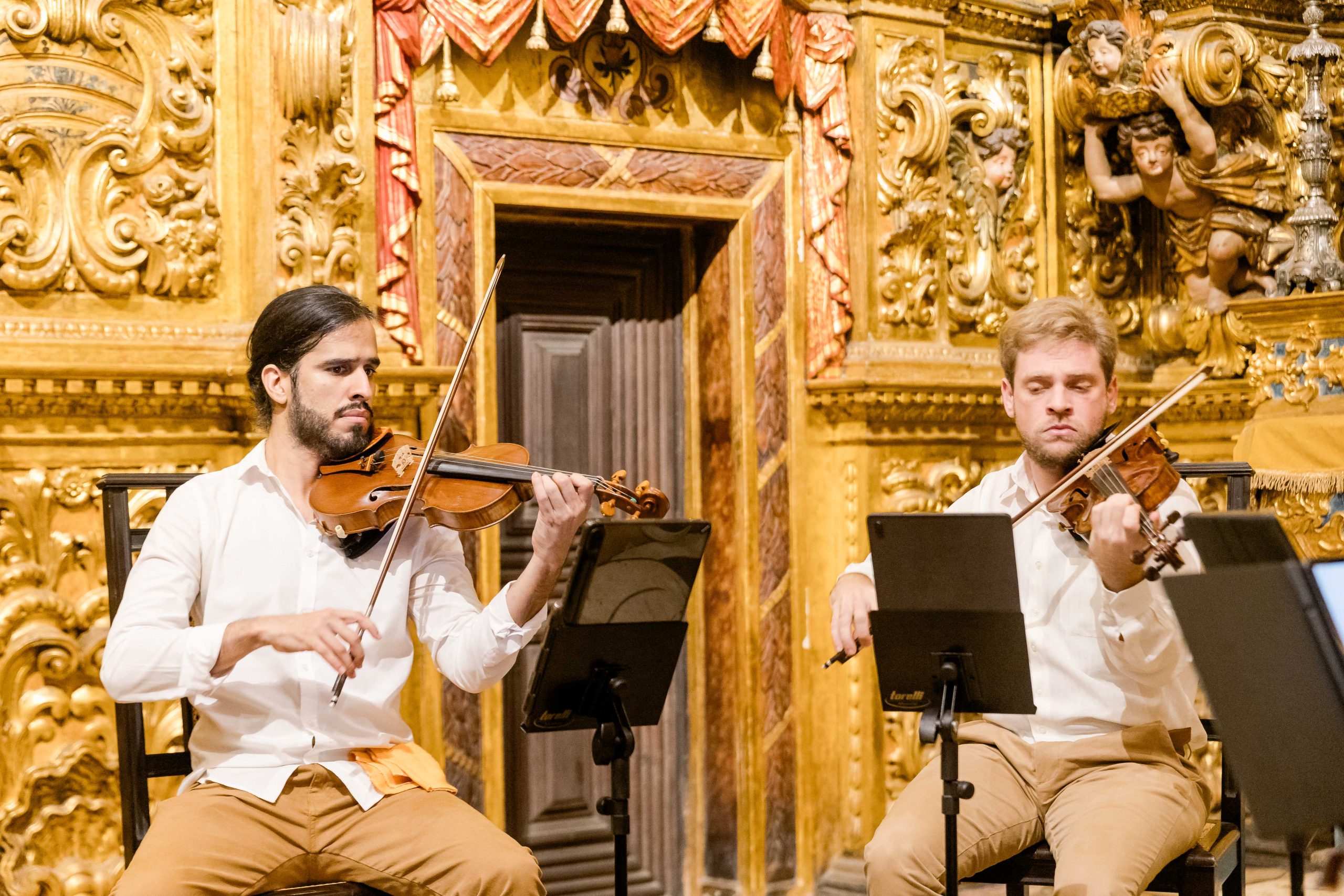 A música, representada no casamento entre a harpa e a lira de Apolo, se materializou com o concerto do Quarteto Atlântico. Uma experiência sensorial, poética e única para o público presente.