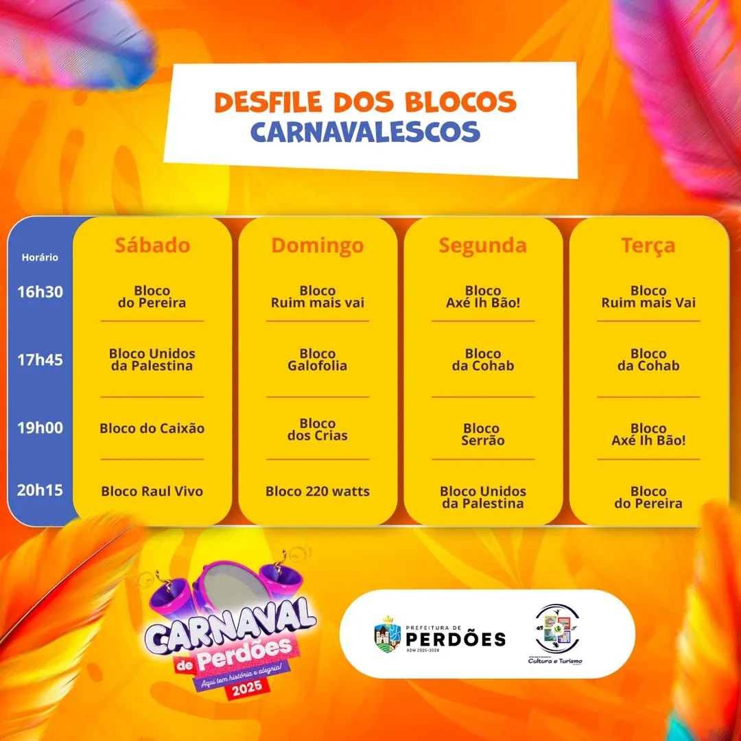 Veja a programação carnavalesca abaixo: