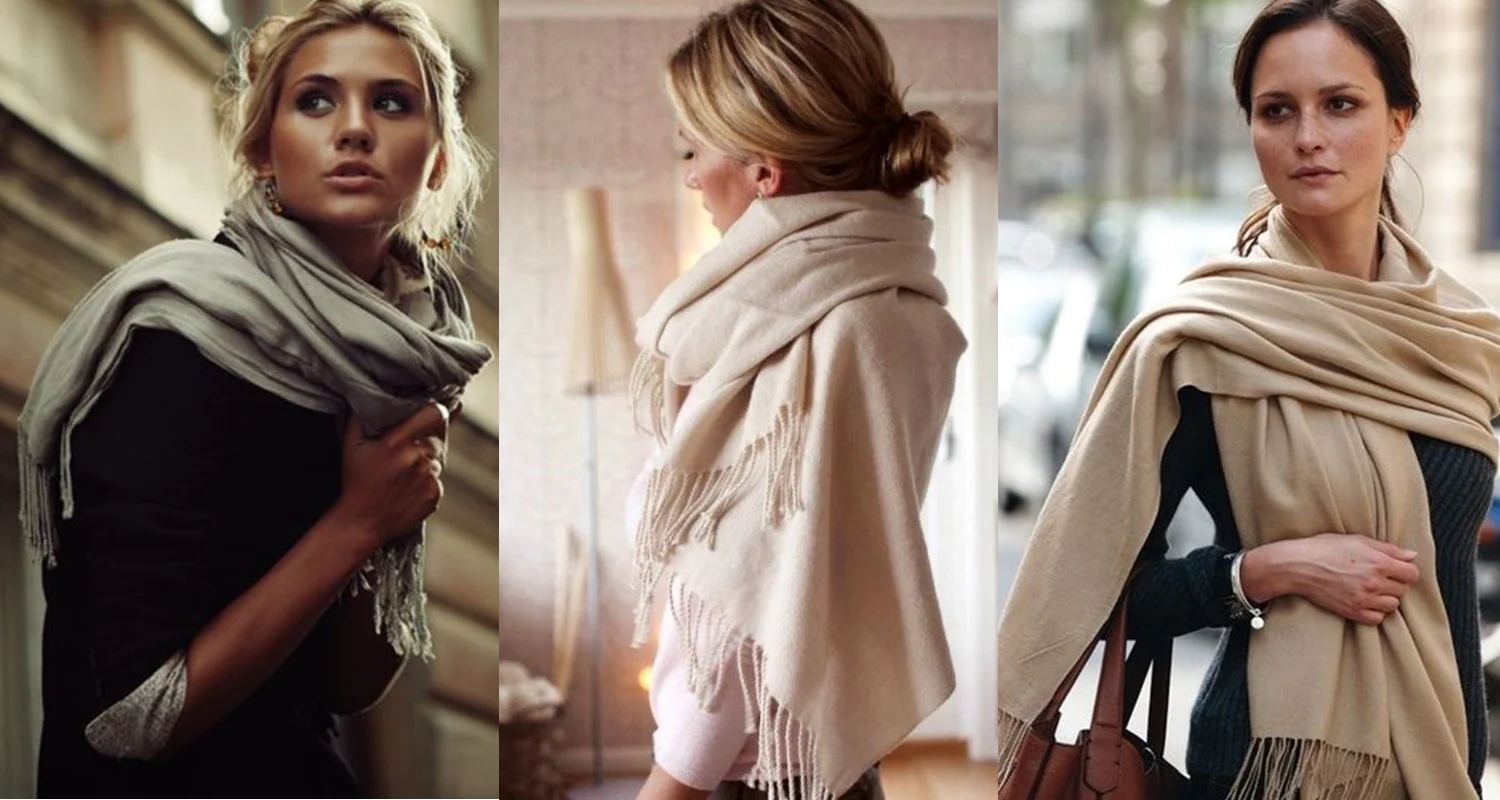Além do toque estético, as pashminas desempenham um papel funcional ao proteger o pescoço e o colo do frio. Pela manhã, ao se preparar para o trabalho, adicionar uma pashmina na cor da estação é uma maneira fácil de esbanjar elegância durante todo o dia. Sua leveza permite que seja facilmente carregada na bolsa, sendo ideal também para viagens de avião, oferecendo conforto diante do ar condicionado.