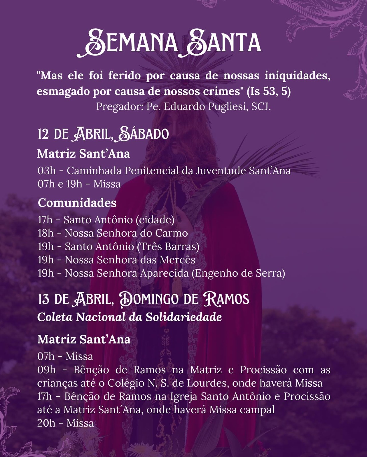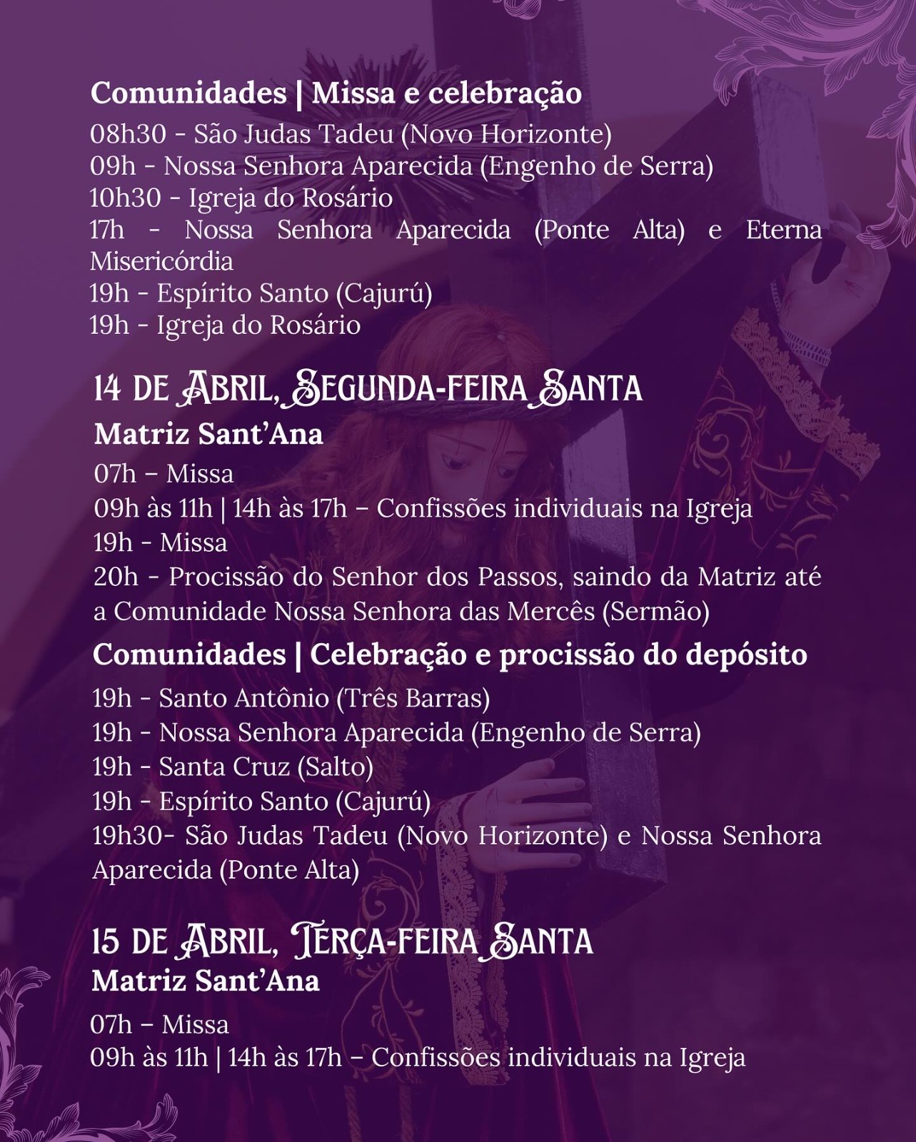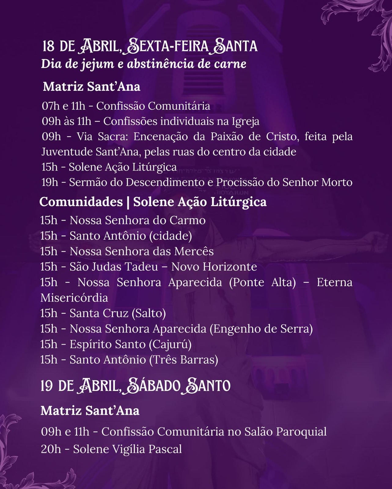 Veja a programação completa da Semana Santa da Paróquia Sant’Ana.