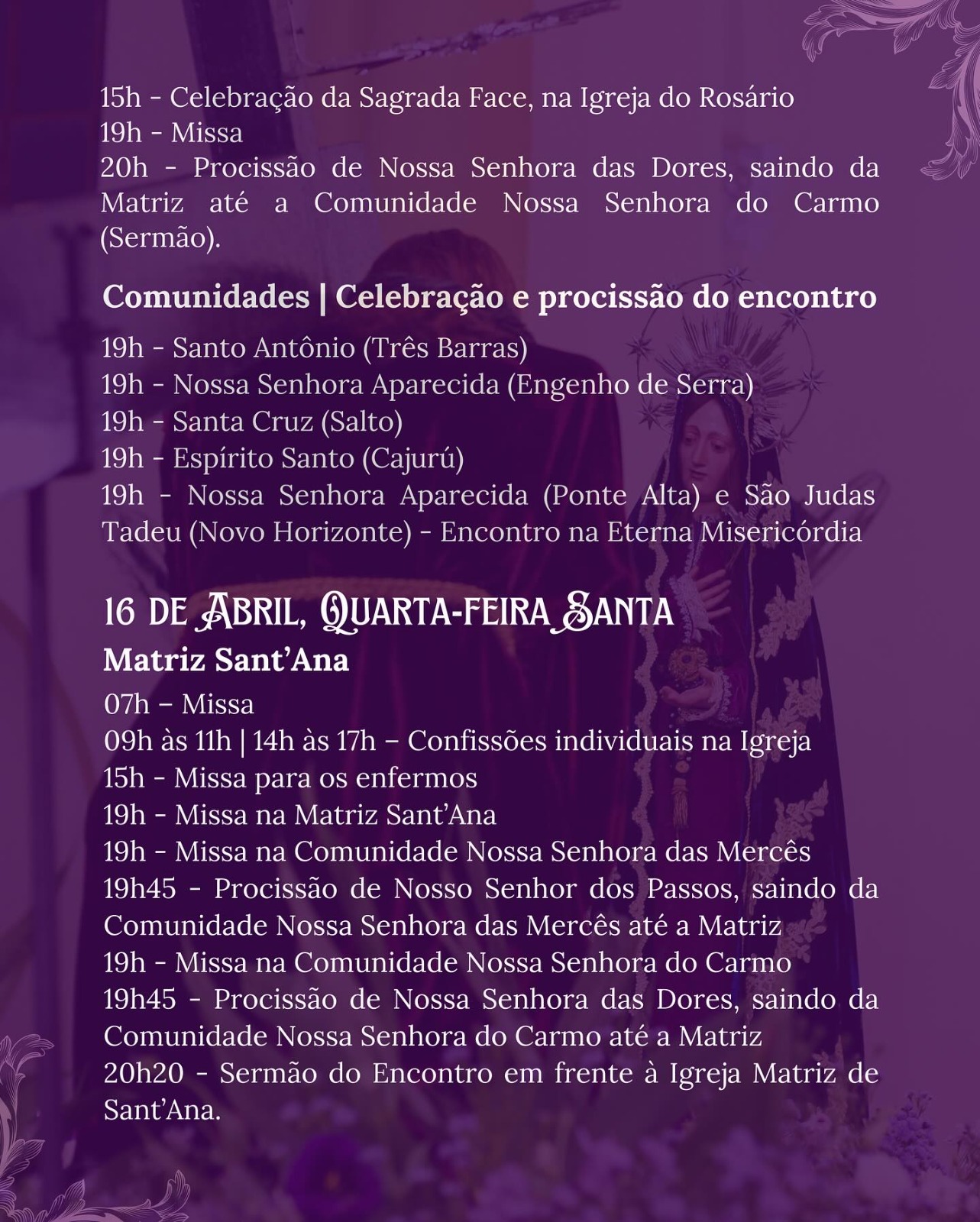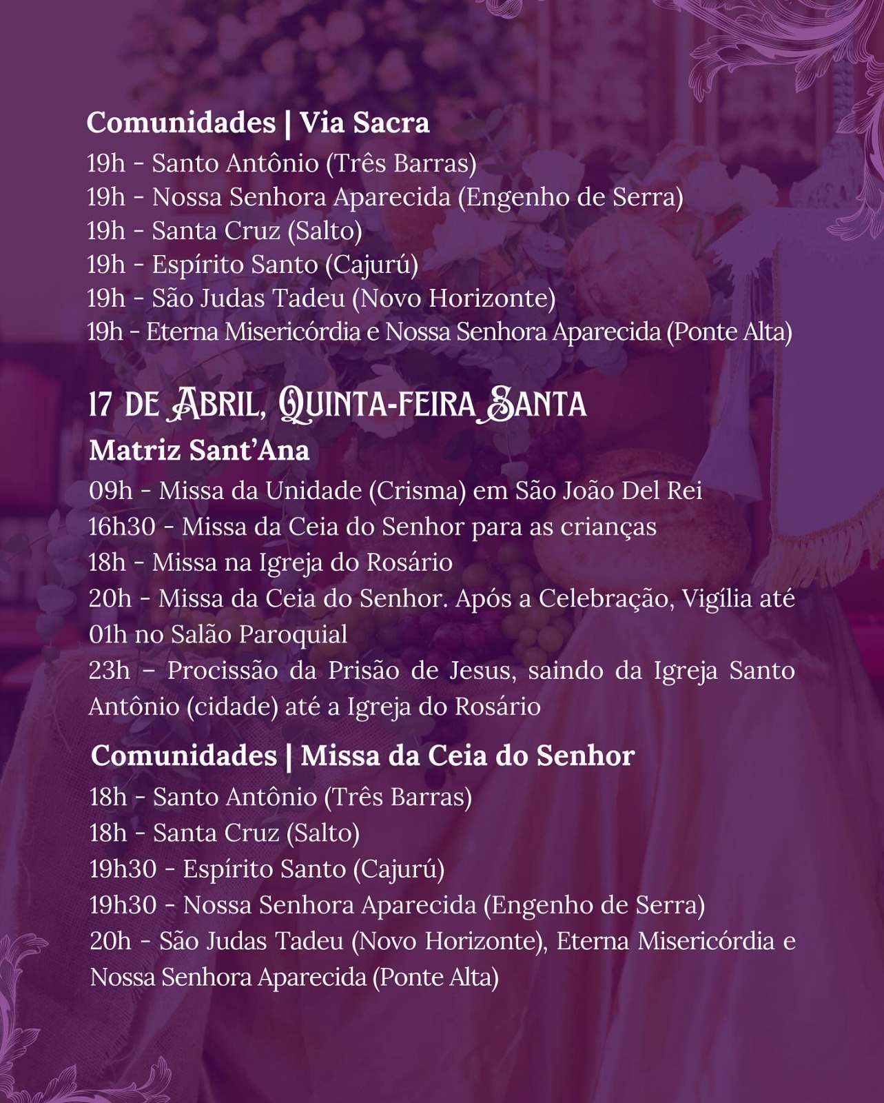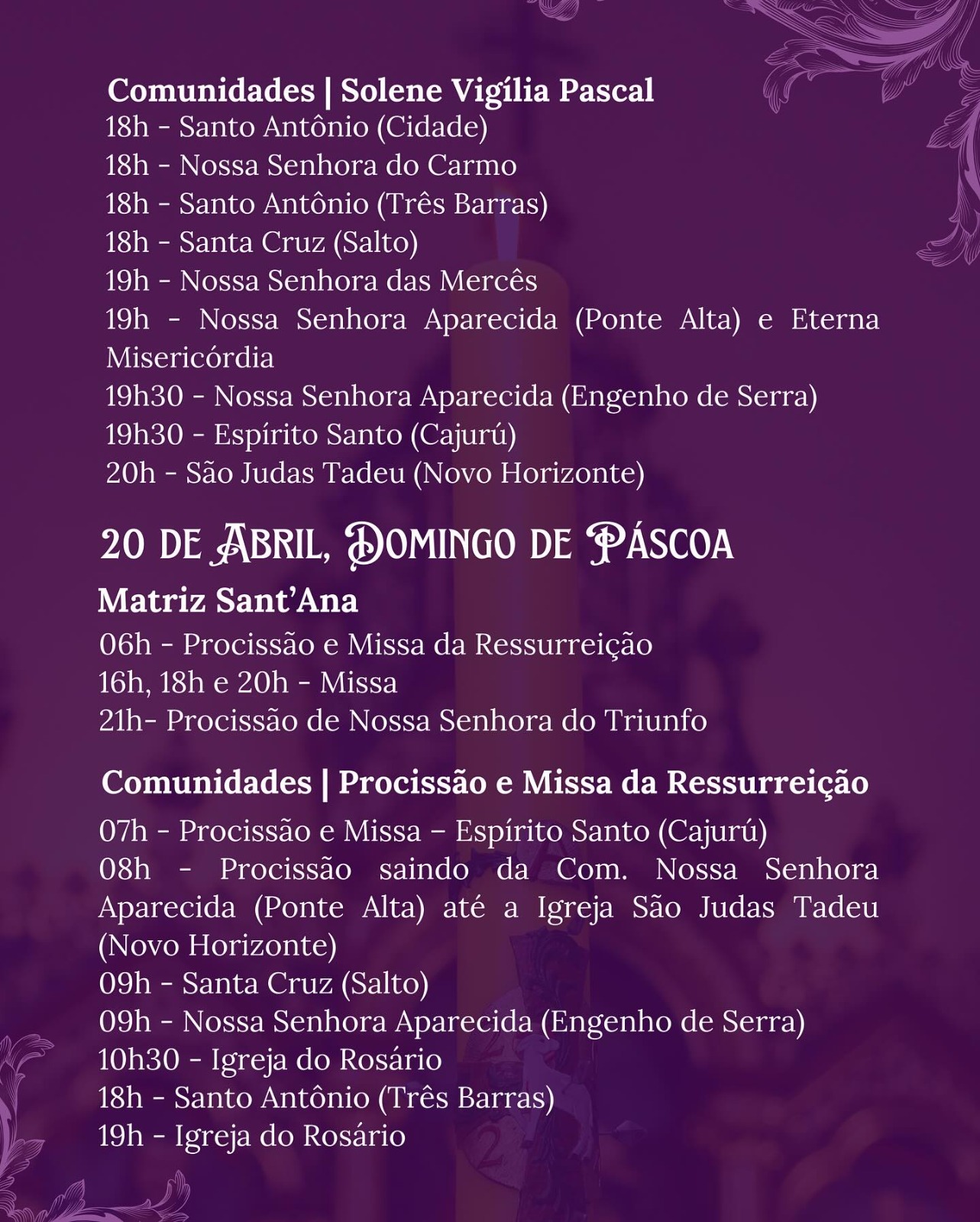 Veja a programação completa da Semana Santa da Paróquia Sant’Ana.