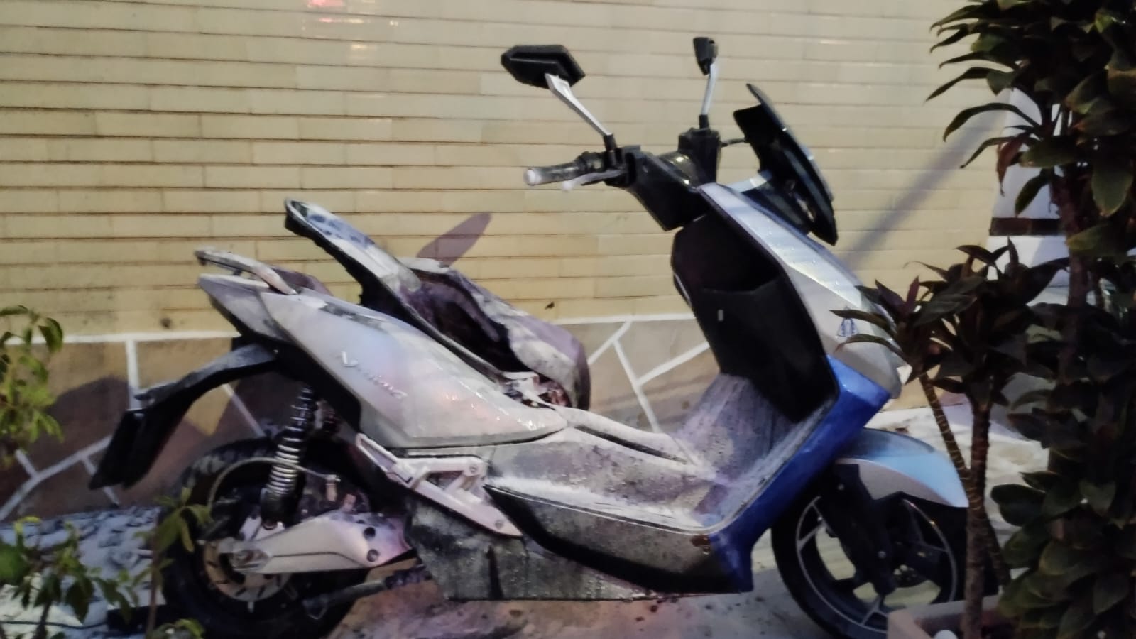 O morador tentou apagar o fogo usando água, mas um vizinho munido de um extintor, que ouviu a explosão, consegui conter as chamas da motocicleta elétrica.