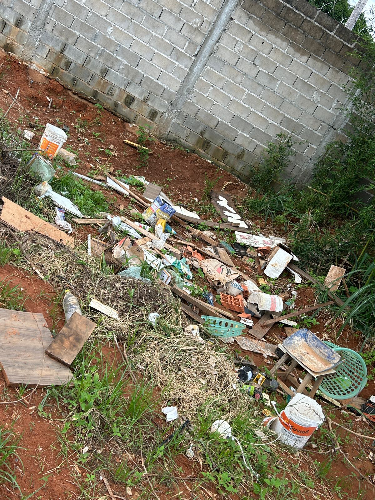 Um terreno no bairro Vale do Sol está sendo utilizado para descarte de lixo e entulho. A reclamação é da moradora Mayra Vianini Chaves.