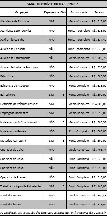 A Unidade de Atendimento Integrado (UAI) de Lavras, em parceria com o SINE, está com vagas de trabalho disponíveis.