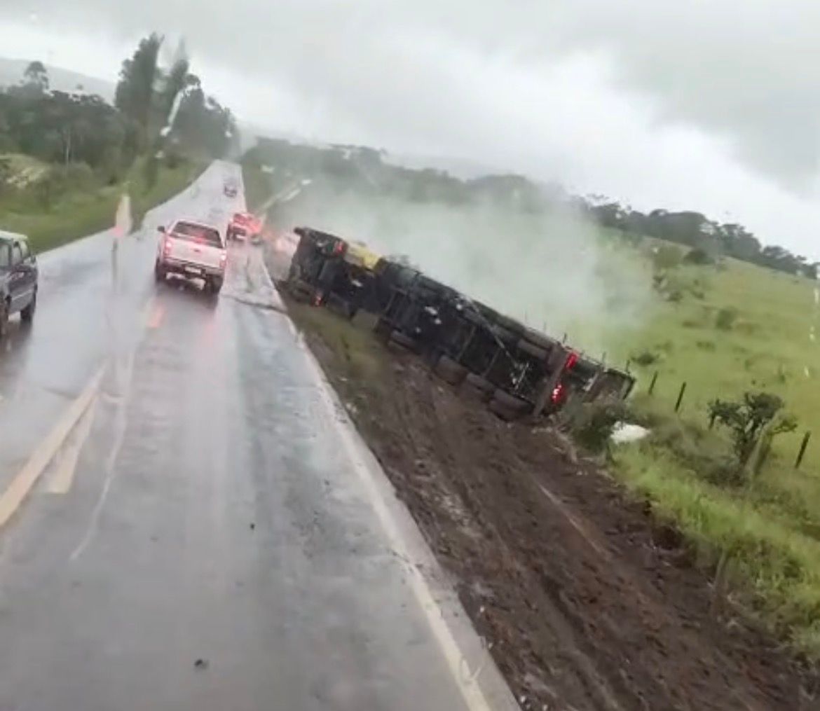 Uma carreta tombou há poucos minutos na BR-265, em Itutinga, nas proximidades do Posto 3W. Até o momento, não há informações oficiais sobre vítimas. O trânsito na região requeriu atenção redobrada, pois a pista pode apresentava lentidão e riscos aos motoristas que trafegam pelo trecho.