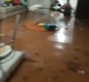 Uma vídeo que circula nas redes sociais mostra a situação de uma família numa residência que foi tomada pela água do forte temporal que caiu sobre Lavras na noite deste domingo (27).