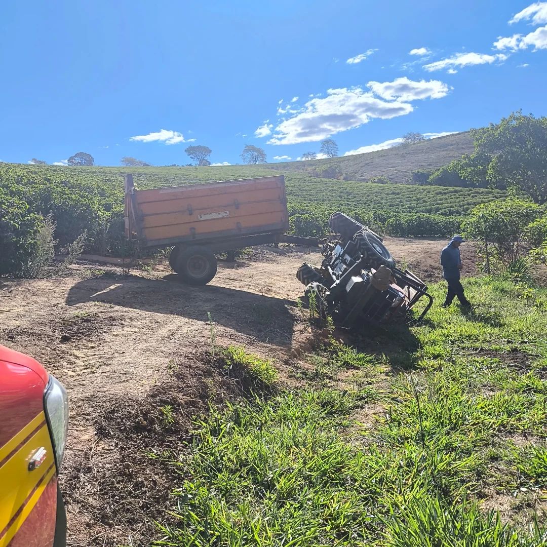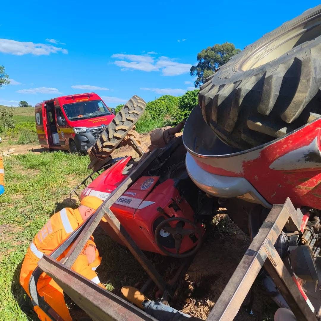 Na tarde de terça-feira (22), o Corpo de Bombeiros foi acionado para atender uma ocorrência em uma propriedade rural próxima à comunidade do Tomba, em Lavras, onde um trator tombou sobre o condutor.