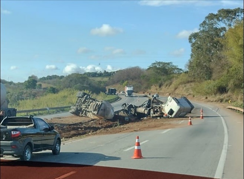 Um acidente no km 719 da BR-381/MG, em Carmo da Cachoeira, interditou as faixas esquerda e central em ambos os sentidos da rodovia.