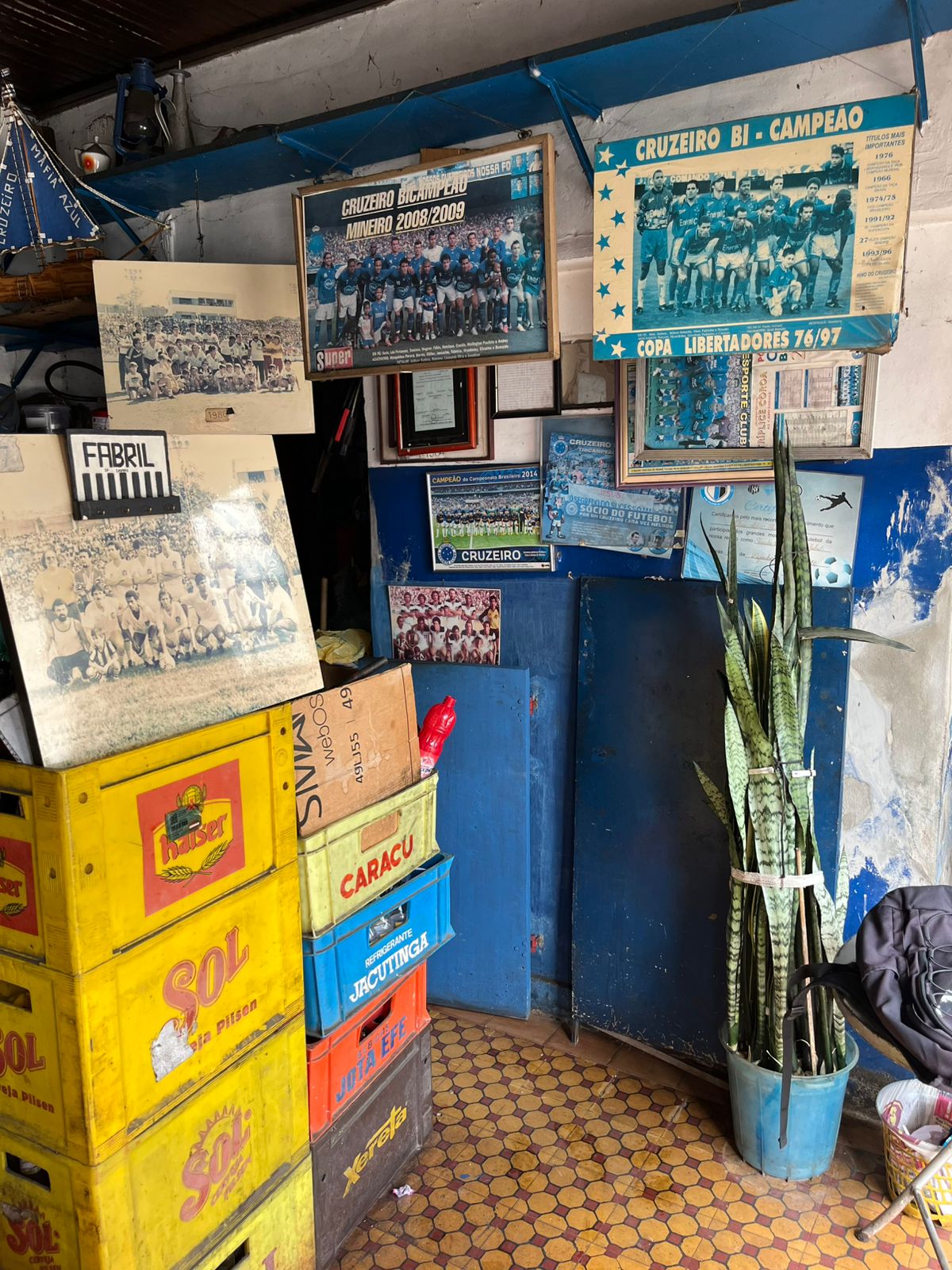 Nas prateleiras do estabelecimento permanecem garrafas de aguardente que acompanham o negócio desde sua fundação. O chamado “boteco raiz” virou praticamente uma lenda na cidade. Entre os objetos que contam a história do lugar também estão imagens de santos e passarinhos engaiolados. Nas paredes, quadros dos times do coração — Fabril Esporte Clube e Cruzeiro Esporte Clube — revelam a paixão do dono pelo futebol.