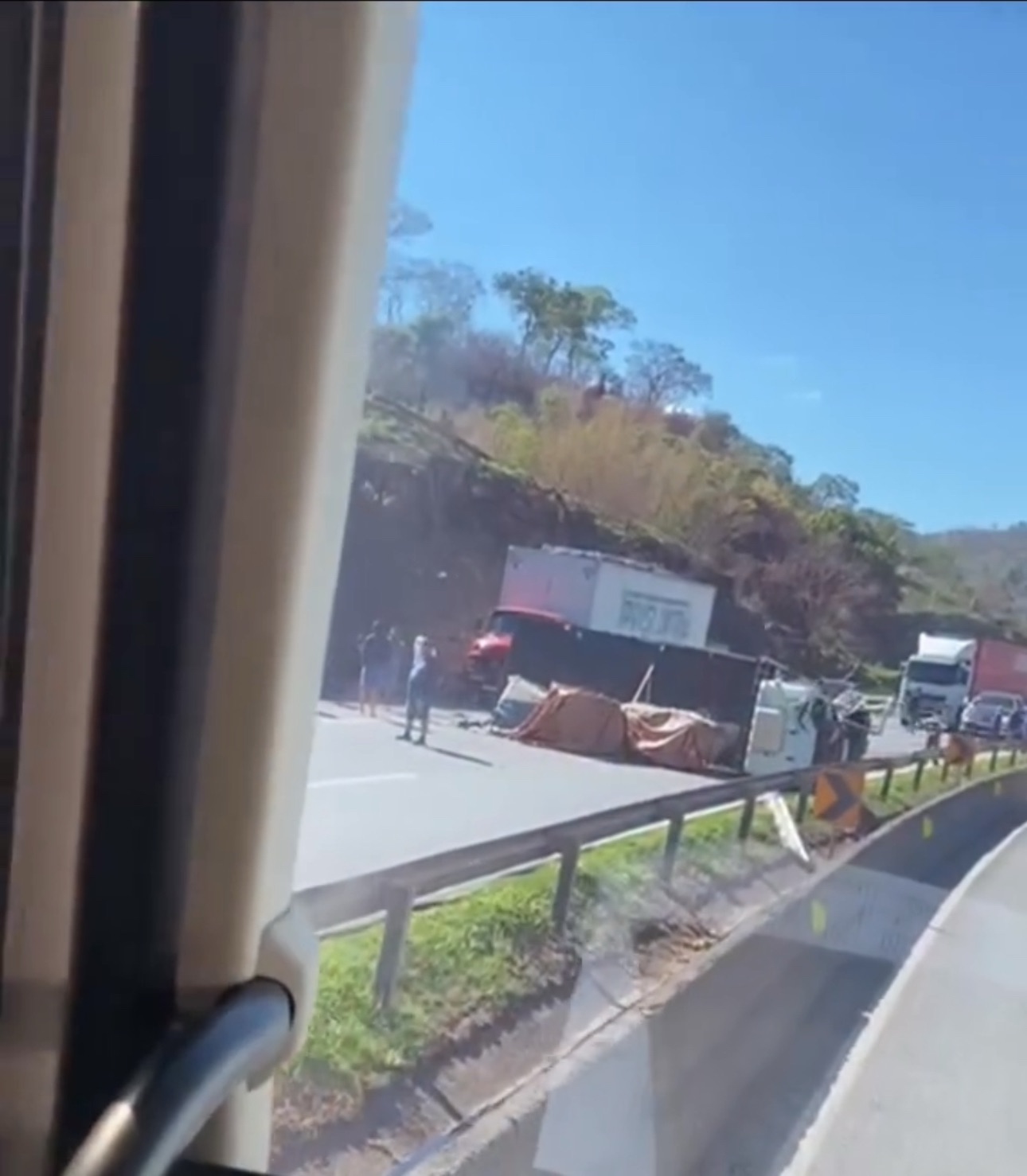 Um acidente envolvendo um caminhão foi registrado na manhã desta quinta-feira (23) no km 688,1 da BR-381, em Lavras, no sentido Belo Horizonte. A faixa esquerda da pista está interditada, e o tráfego segue apenas pela direita, com cerca de 4 km de congestionamento. Equipes trabalham no atendimento e na liberação da via. Ainda não há informações sobre o estado das vítimas.