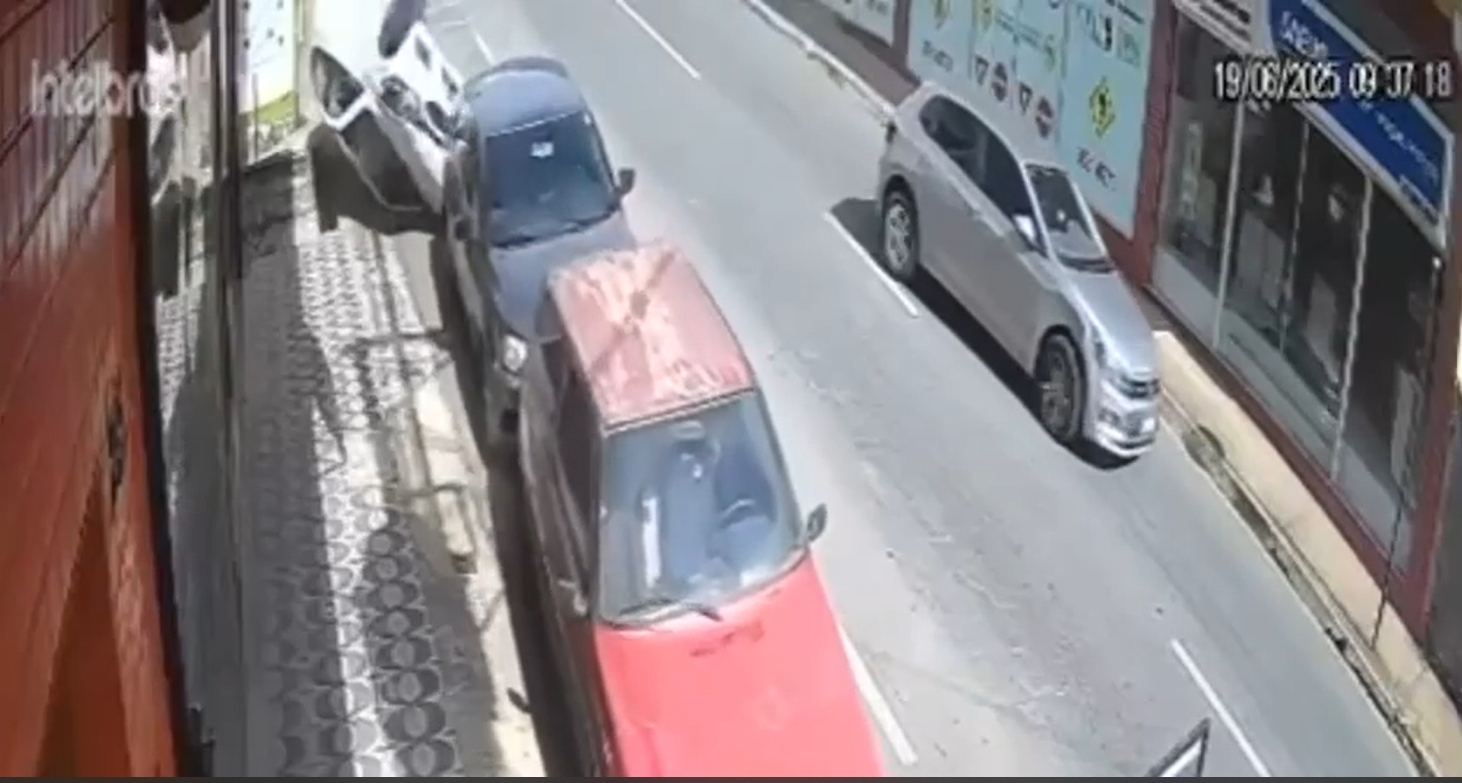Nas imagens, o veículo perde o controle e atinge dois veículos que estavam parados no local. As causas do acidente estão sendo investigadas. Segundo as primeiras informações, ninguém se feriu no acidente.
