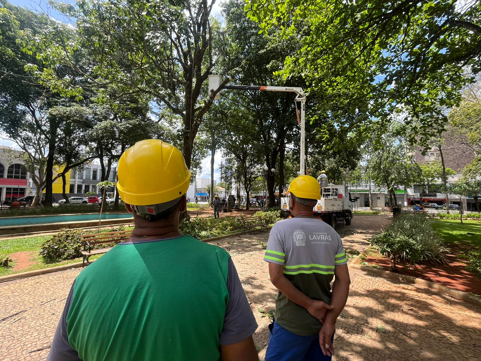 Lar Notícias Corte de árvores prepara Praça Dr. Augusto Silva para iluminação de Natal