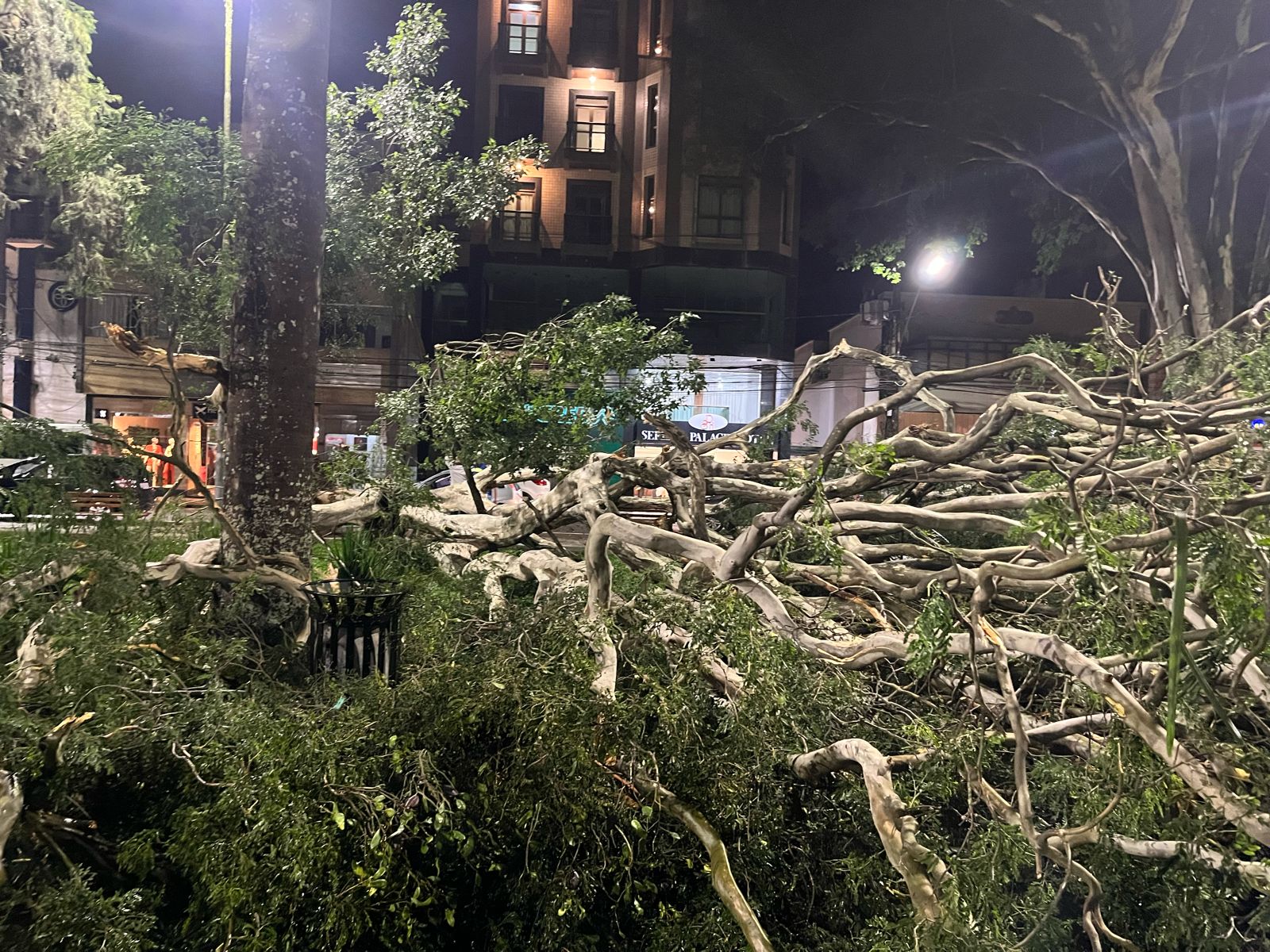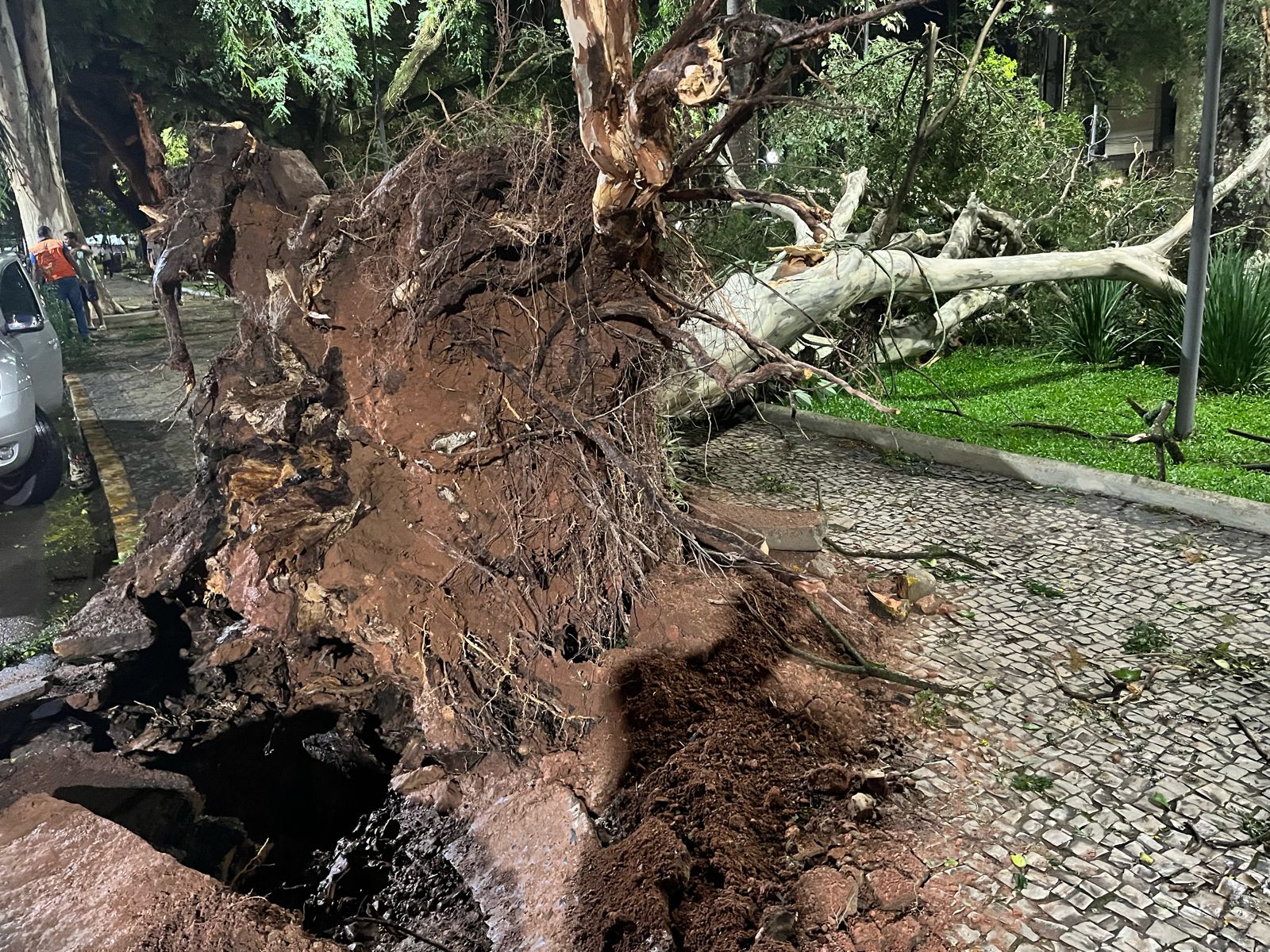 A gigantesca árvore que caiu durante uma tempestade na Praça Dr. Augusto Silva, na noite deste sábado (3), é de uma espécie de origem australiana.