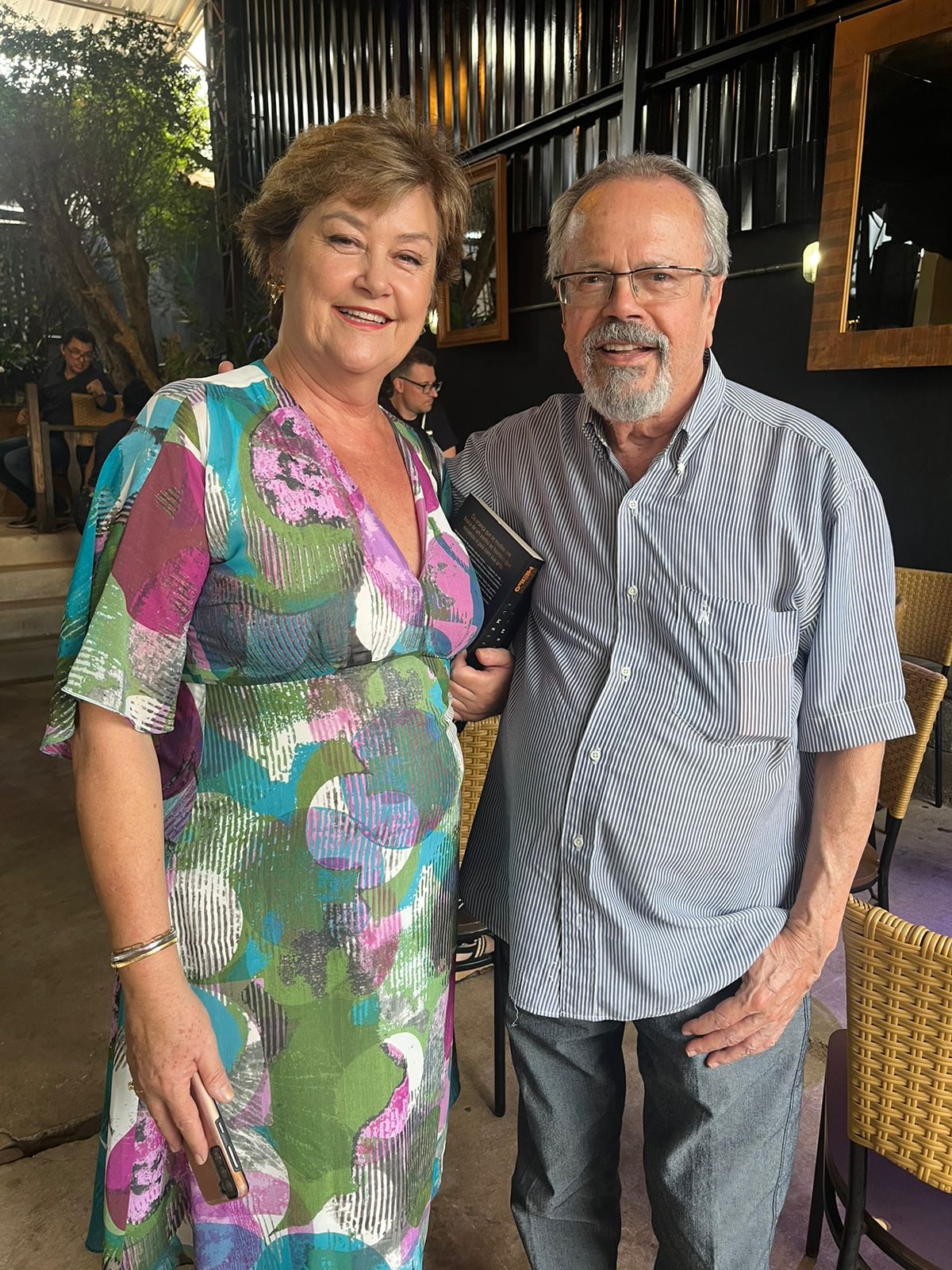 O pai do ator, Dalton Natal de Melo, ao lado da prefeita de Nepomuceno, Iza Menezes.