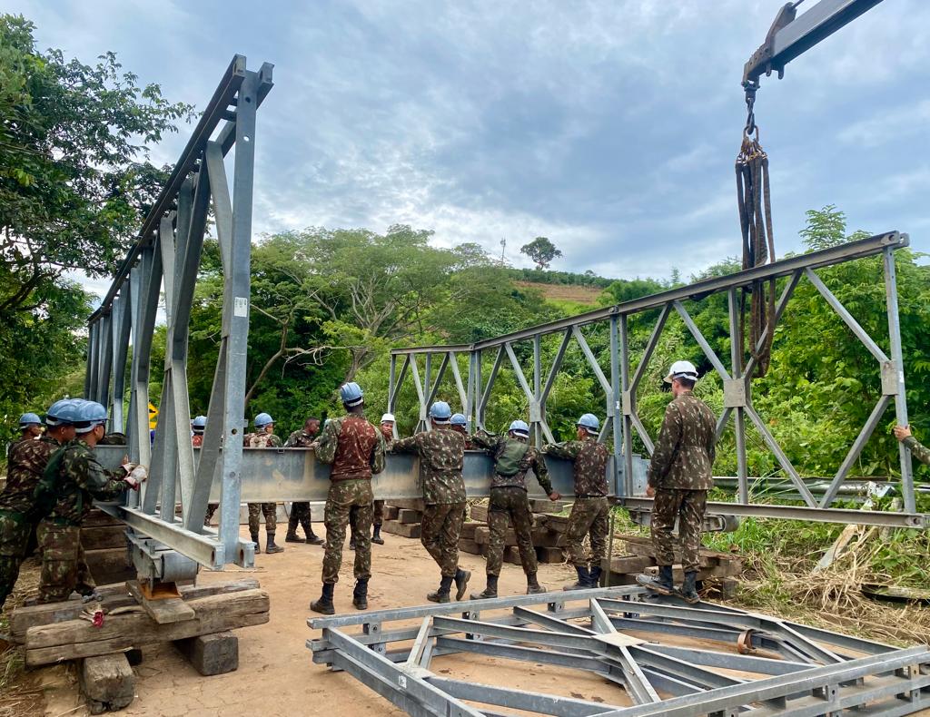 Ela foi destruída durante a enchente no local no último domingo (26). Os militares estiveram no local na manhã desta quarta-feira (29).