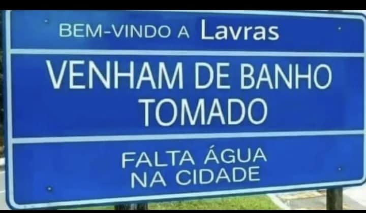 Dezenas de moradores de Lavras atravessam o problema da falta de abastecimento de água nos últimos dias, o que tem gerado diversas manifestações de protesto nas redes sociais, sendo algumas até bem humoradas, como a que ilustra essa postagem.