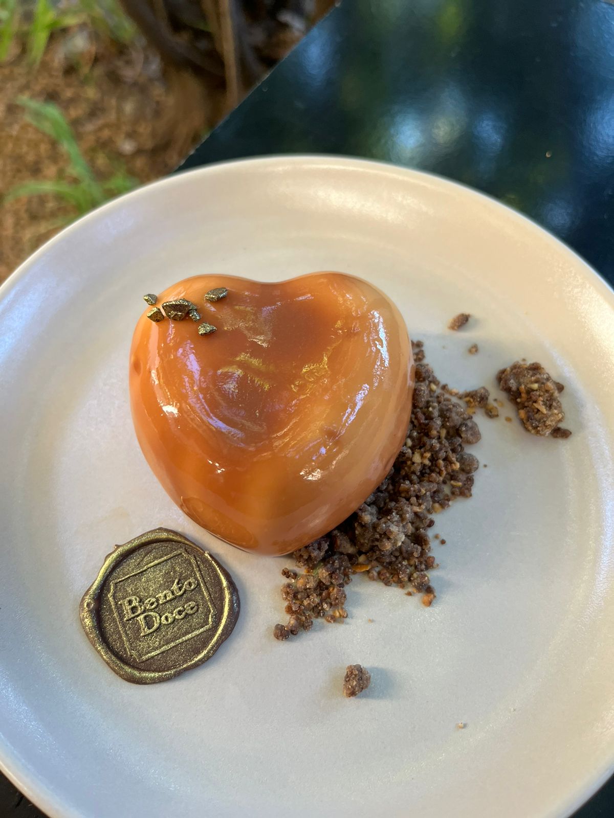 O mouse de queijo com caramelo de rapadura acompanhado de crumble de café e amendoim, assinado pela chef Ariana Bento (@bentodoce), traduz a alma mineira.