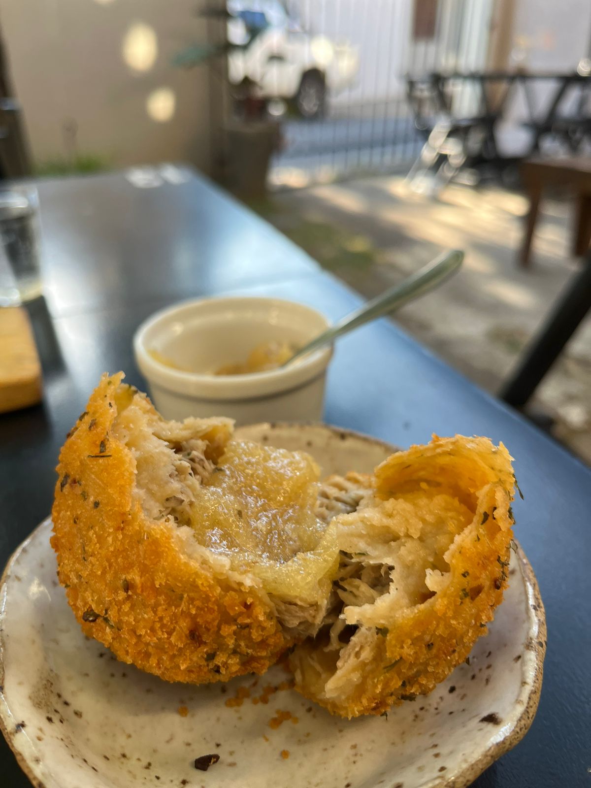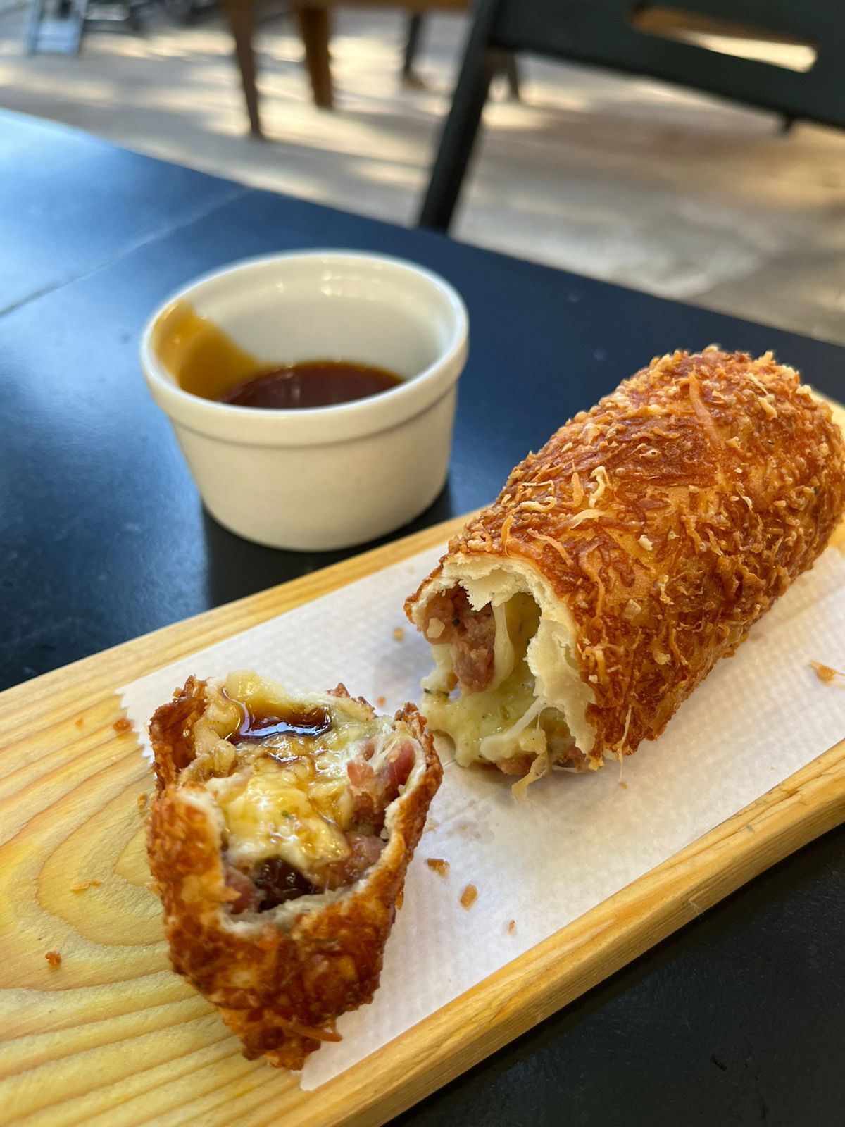 Para o segundo round, o Cigarrete de Linguiça com Queijo acompanhado de melado. Juntos e misturados, o salgado faz jus ao que Minas Gerais tem de melhor. A personalidade forte e intensa mora aqui. Dois a zero para a chef.