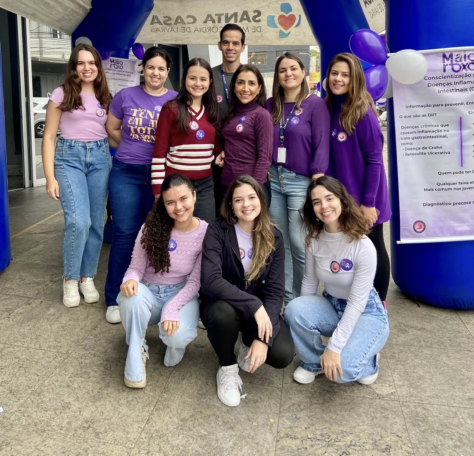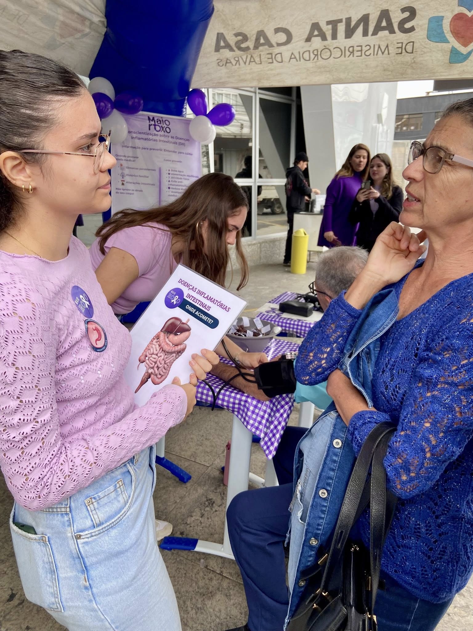 A Santa Casa de Misericórdia de Lavras, em parceria com a Liga Acadêmica de Gastroenterologia (Lagastro/UFLA) e com o apoio das especialidades de Coloproctogia e Gastroenterologia do hospital, promoveu no sábado (31) ações do Maio Roxo, mês de conscientização sobre as Doenças Inflamatórias Intestinais (DII). O evento buscou alertar a população para os sinais de alerta para essas doenças e hábitos preventivos.