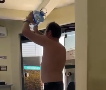 Nas imagens que circulam pelas redes sócias, o morador tira a roupa, sem ficar totalmente nu, e toma um banho no espaço de atendimento ao cliente da empresa.
