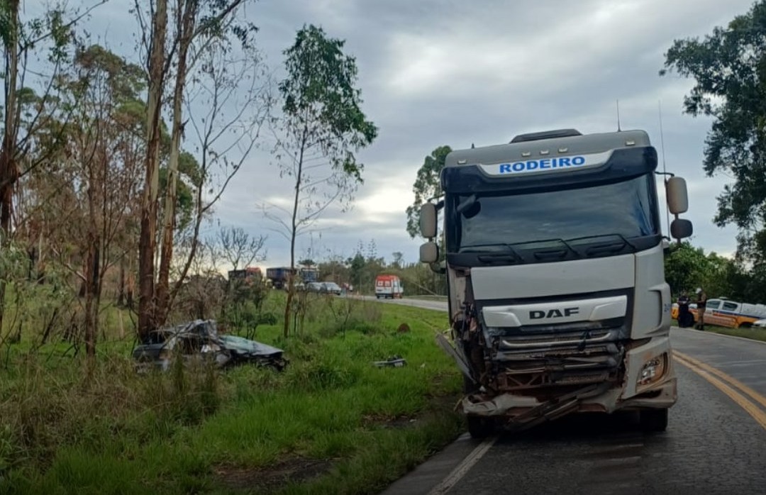 Um grave acidente foi registrado na tarde desta segunda-feira (24) na BR-265, em Nazareno, próximo à ponte que dá acesso a Itutinga. Conforme relataram usuários da rodovia, a colisão envolveu uma combinação de veículos de carga e um automóvel Gol.