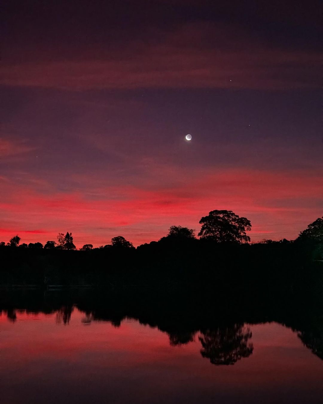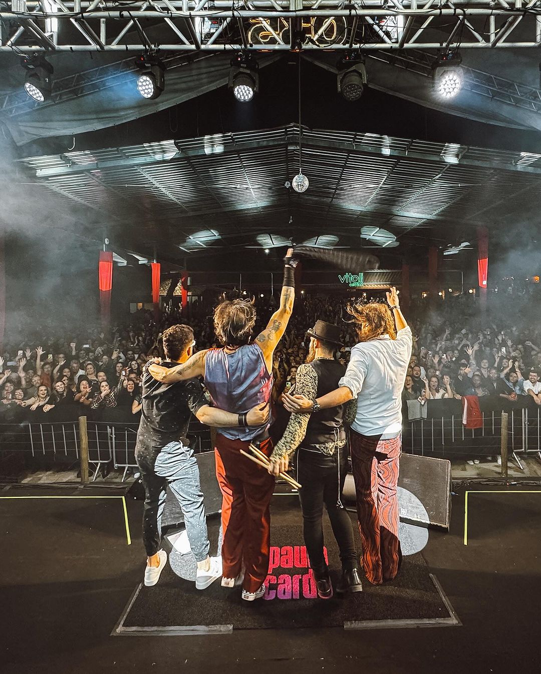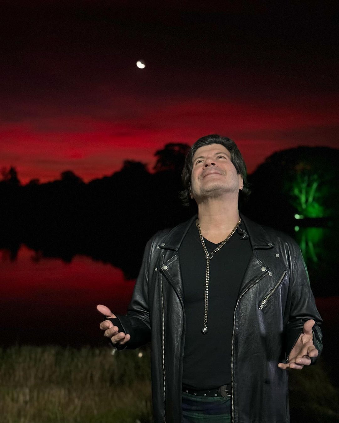 “Que lindo, Lavras! Under a blood red sky! Que maravilha subir no palco junto com a lua enquanto o sol se põe nessa explosão de cores dramáticas!”, escreveu o artista em seu perfil no Instagram.