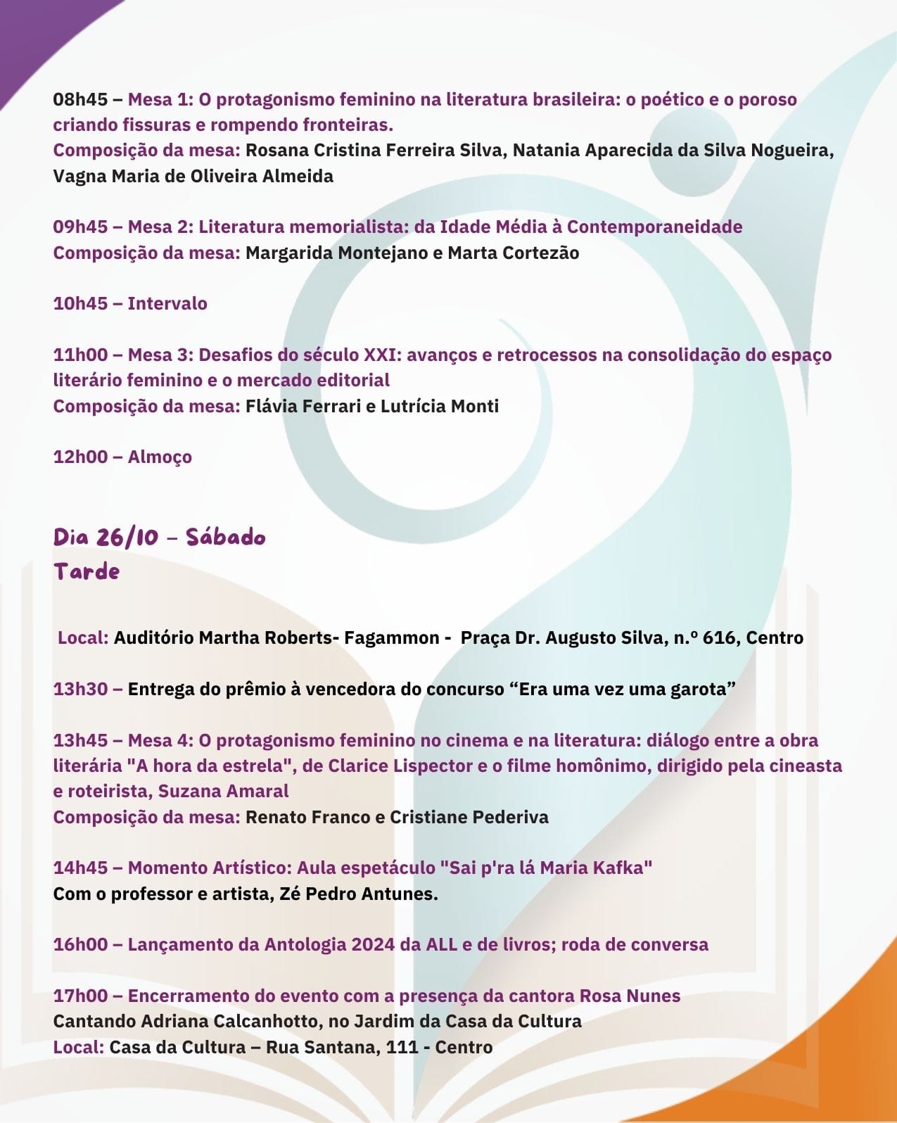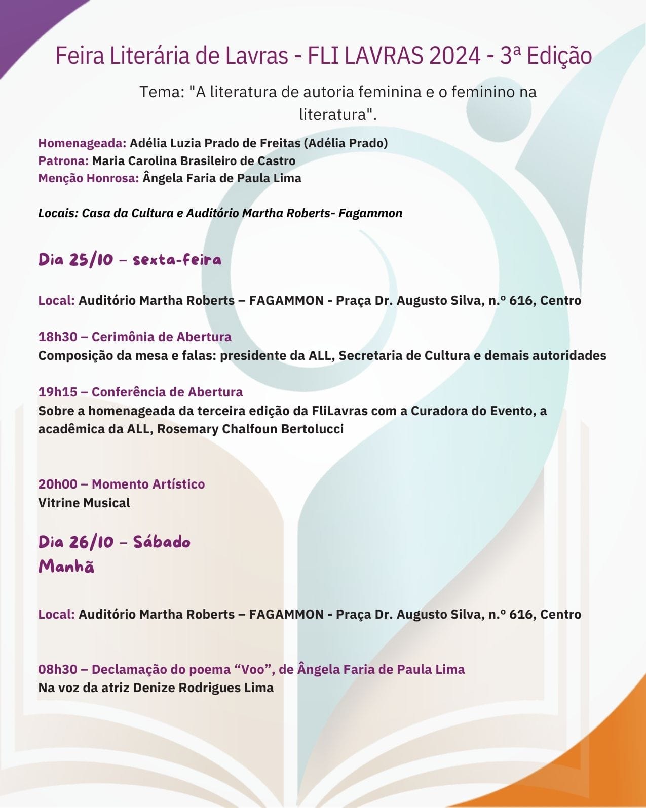 Lar Eventos Programação da 3ª Feira Literária de Lavras (FliLavras)