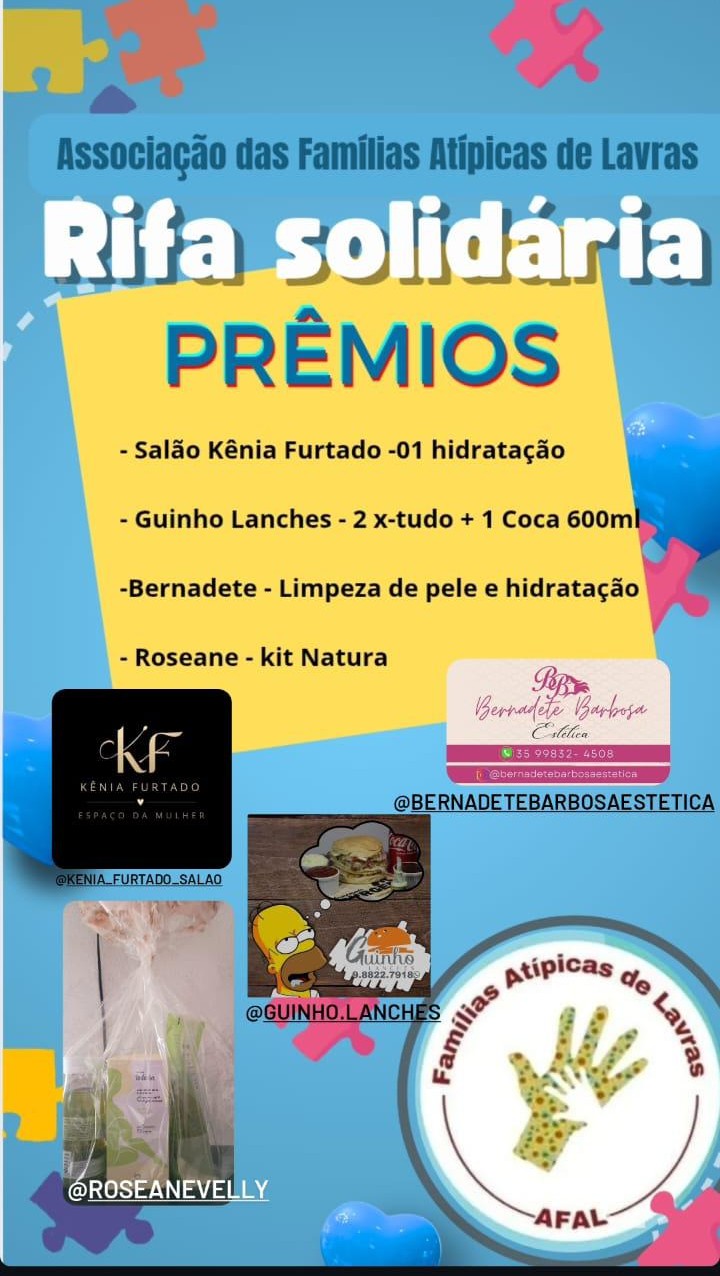 A Associação das Famílias Atípicas de Lavras organizou uma rifa para levantar fundos para realização do evento “Cuidar de Quem Cuida”, que visa valorizar e empoderar as mulheres da associação.