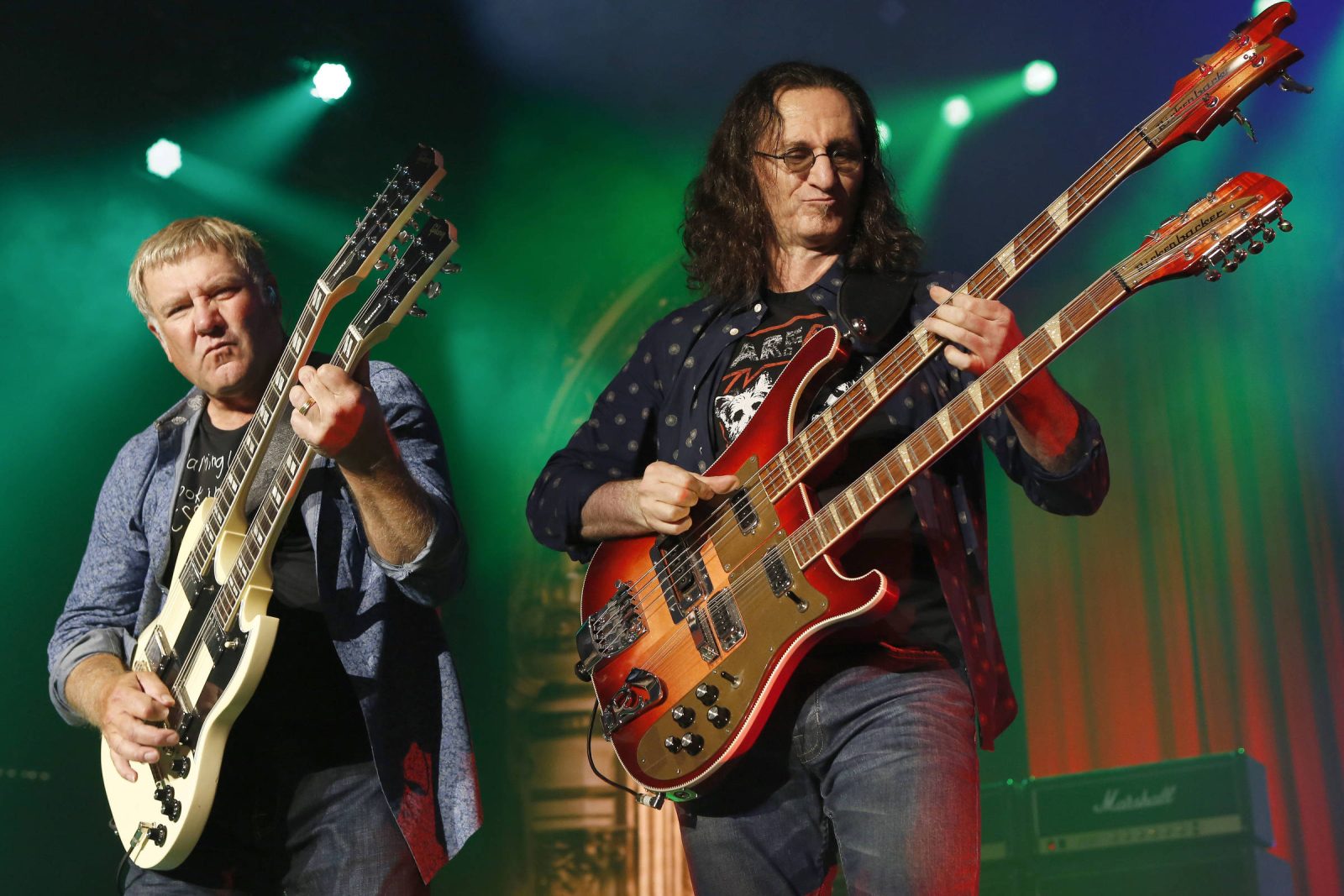 Alex Lifeson (à esq.) e Geddy Lee, membros do Rush, farão shows no Brasil em 2027.