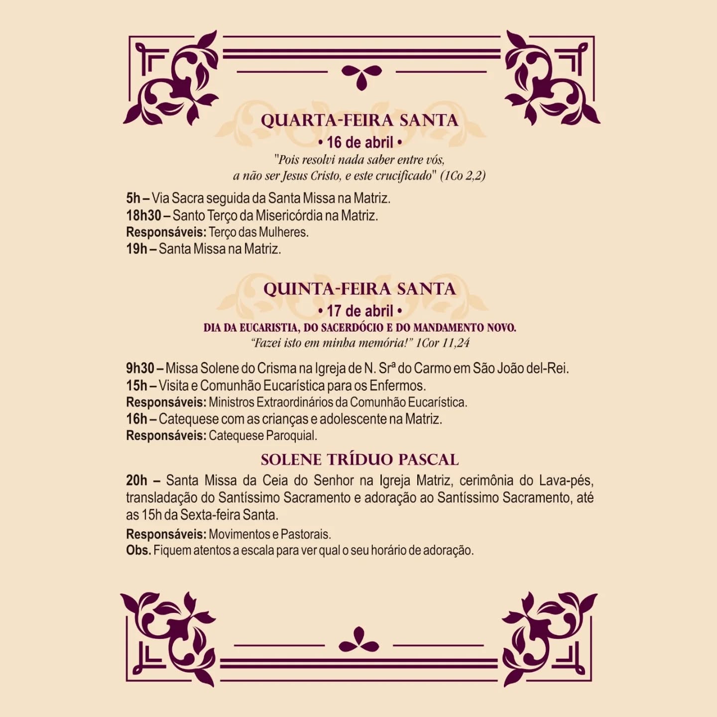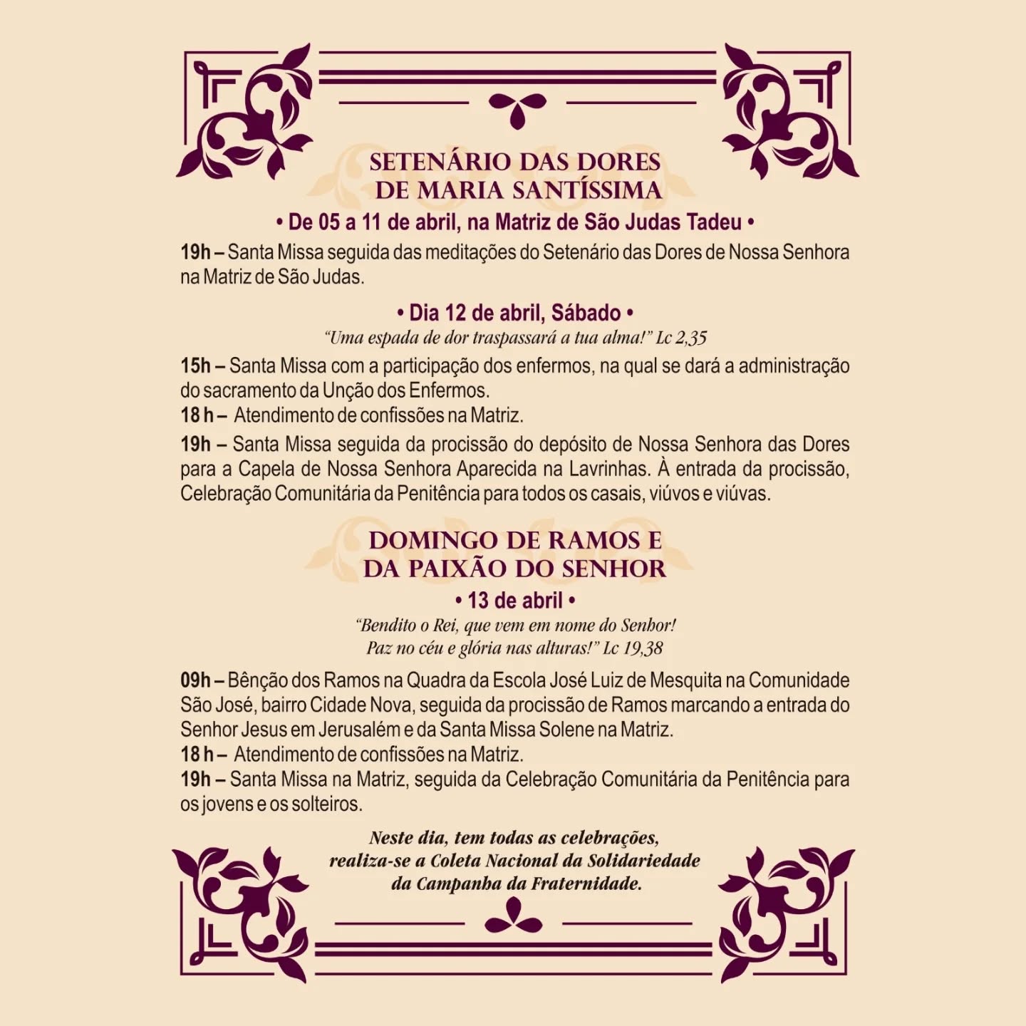 Veja a programação da Semana Santa da Paróquia São Judas Tadeu