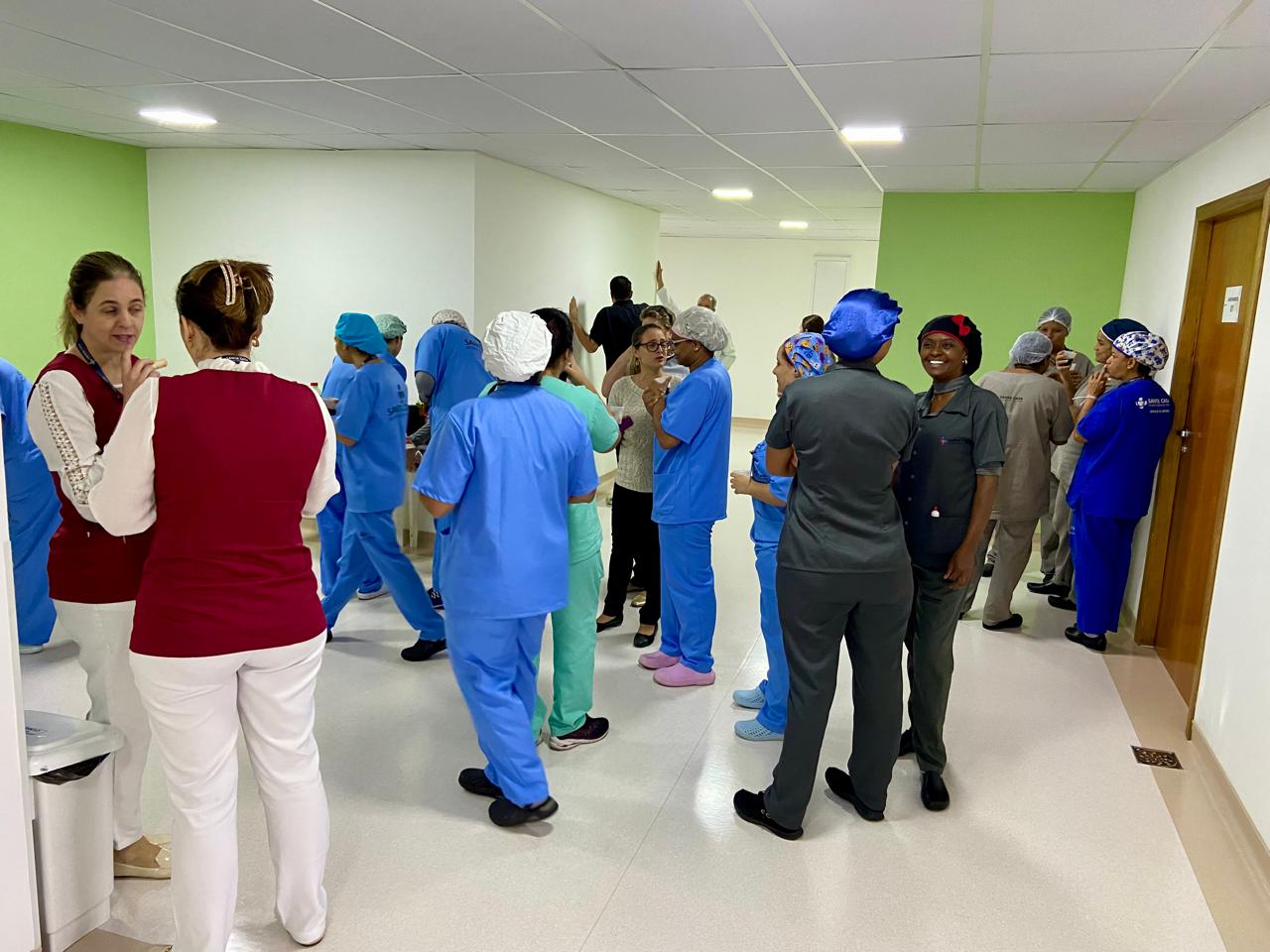 Hoje, o sétimo andar da Santa Casa de Lavras foi aberto para uma visita especial dos nossos colaboradores, que conheceram de perto a nova estrutura, que amanhã será dedicada à internação e ao banco de sangue. Um espaço moderno e preparado para oferecer mais conforto, segurança e excelência no cuidado aos nossos pacientes.