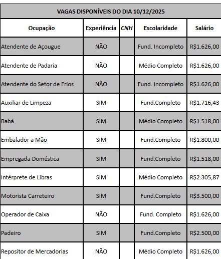 Os interessados devem comparecer à sede da UAI, localizada na Praça Monsenhor Domingos Pinheiro, 79, e procurar o supervisor do SINE para mais informações e encaminhamentos.