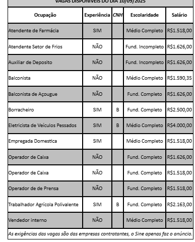 A Unidade de Atendimento Integrado (UAI) de Lavras, em parceria com o SINE, está com vagas de trabalho disponíveis.