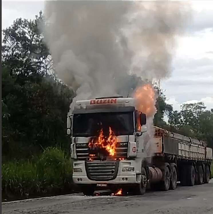 Uma fumaça que saia da parte frontal e a diminuição da velocidade do veículo foi percebida pelo motorista antes que o incêndio tivesse início. O Corpo de Bombeiros combateu as chamas, o que impediu que elas tomassem conta de todo o veículo carregado de produtos metálicos.