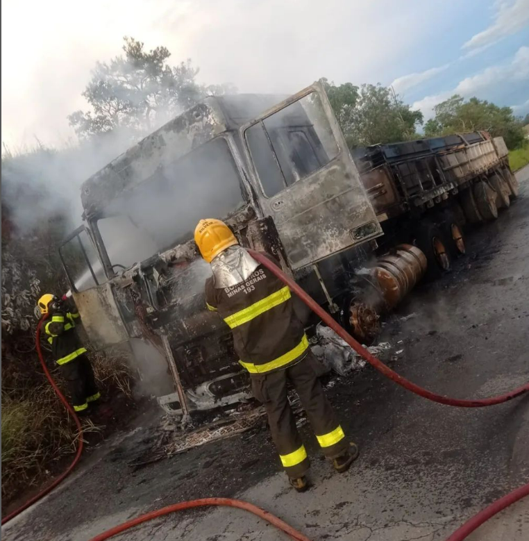 Vídeo: Carreta pega fogo na BR 265 em Lavras