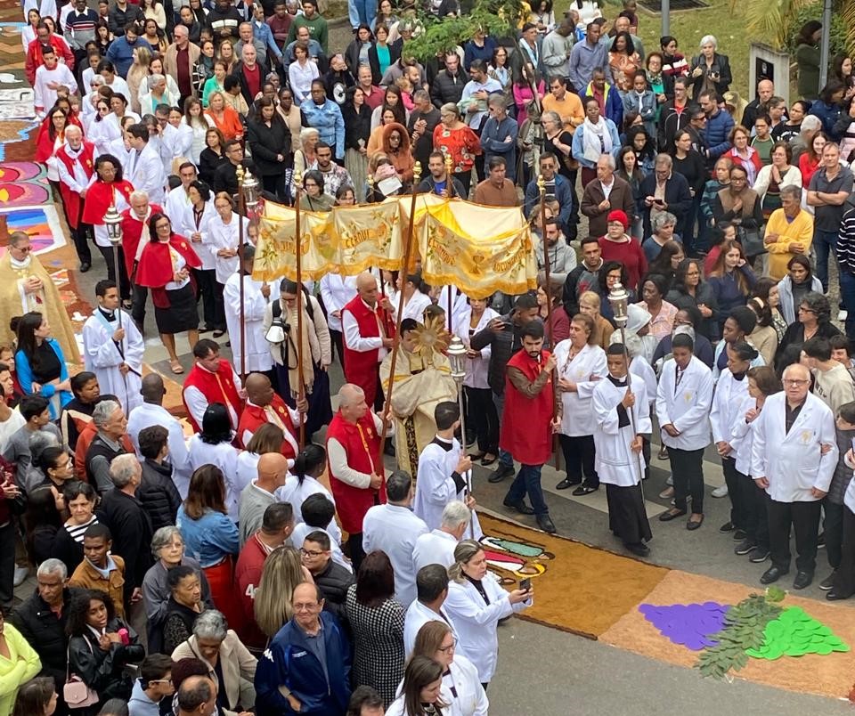 Católicos lavrenses lotaram as ruas do centro da cidade para celebrar o Dia de Corpus Christi nesta quinta-feira (30). A procissão deixou a Matriz de Sant’Ana em direção à Praça Dr. Augusto Silva, passando pela Igreja do Rosário. A missa campal aconteceu na Matriz de Sant’Ana.