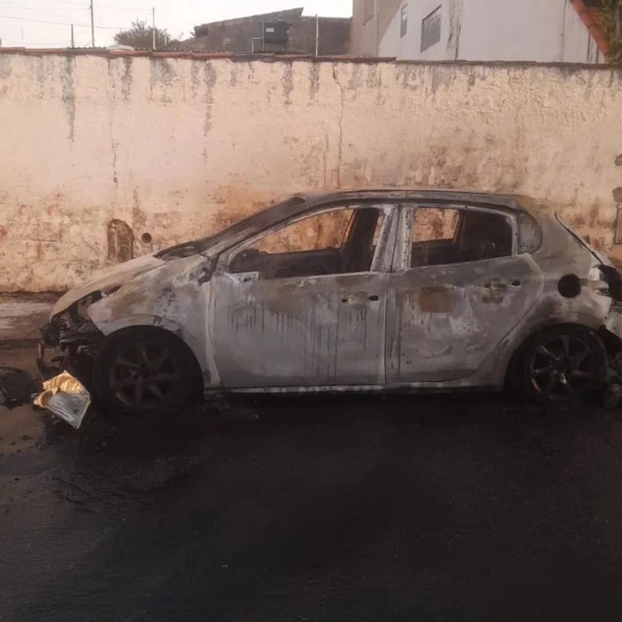Um incêndio Dio destruiu um veículo na rua Manoel Fernandes de Lima, bairro Cascalho,, neste sábado (4),