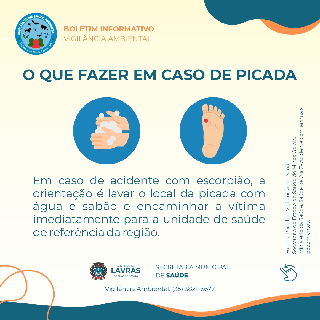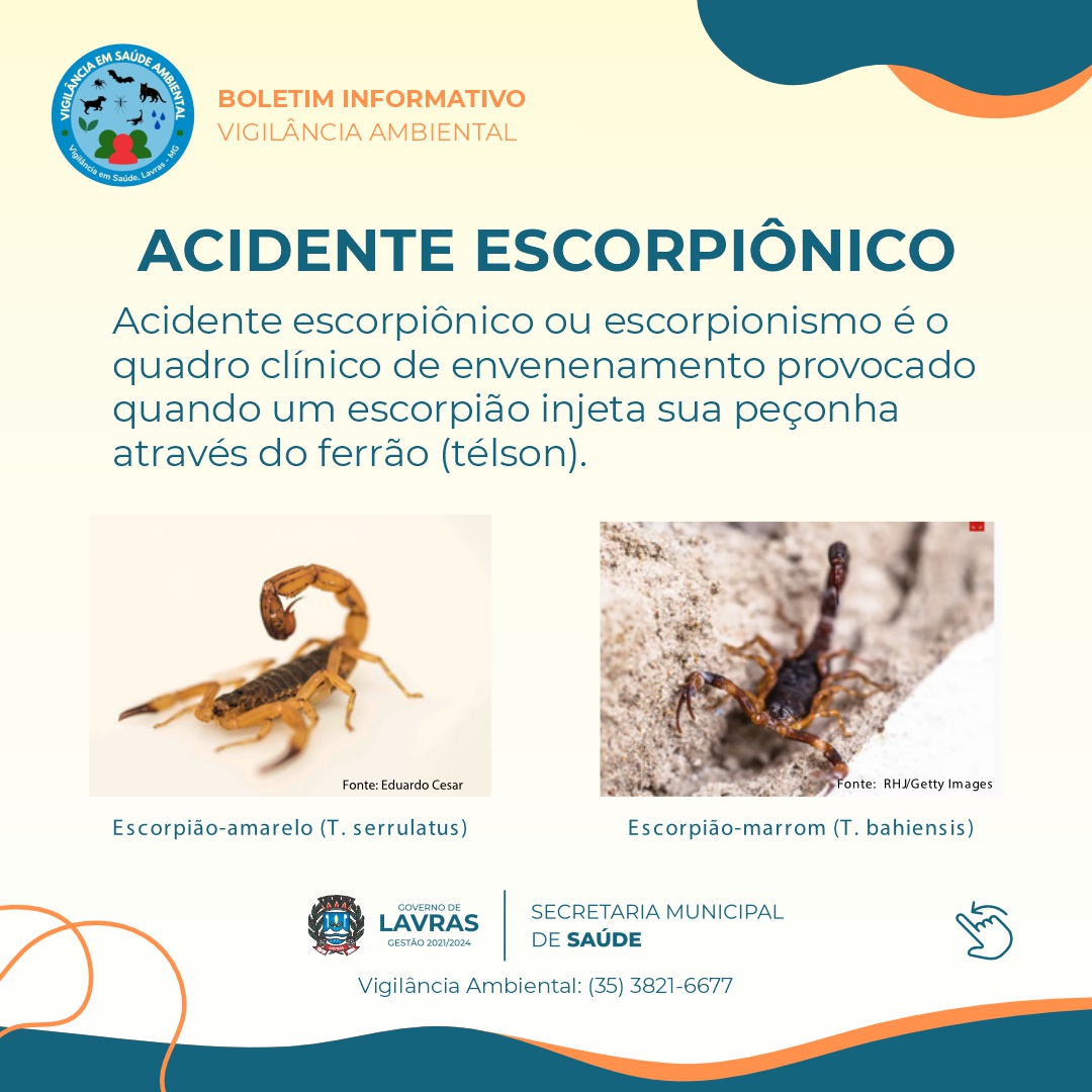 O Governo Municipal, através da Secretaria Municipal de Saúde e Vigilância Ambiental reforçam a importância de medidas preventivas para evitar acidentes com escorpiões, especialmente em áreas urbanas. Confira as principais orientações e em caso de acidente, procure imediatamente a UPA.
